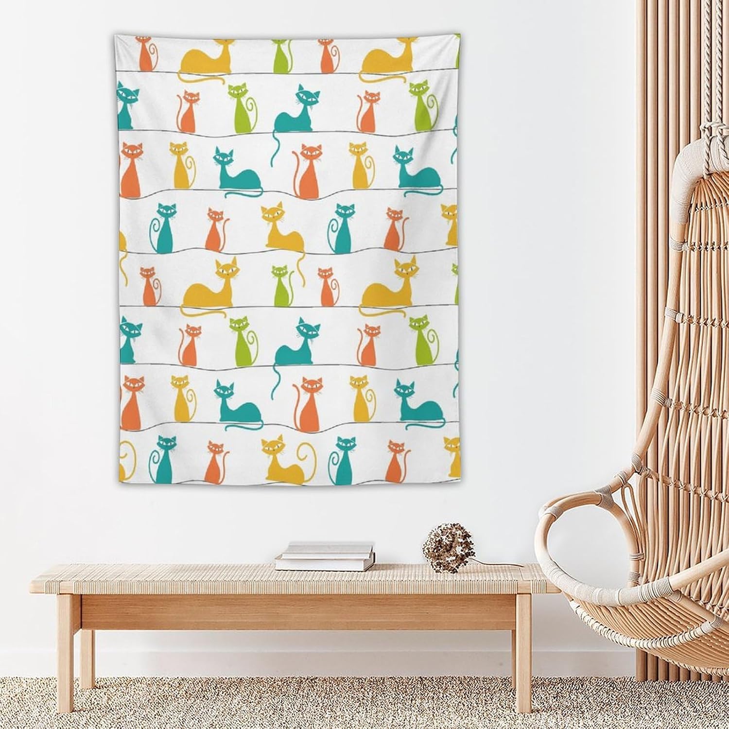 ICMOLYYENLO Boho Medieval Cat Tapestry, Abstract Atomic Starburst Geometric Aesthetic Art Wall Hanging For Bedroom Living Room Dormitory 60x80 Inches
