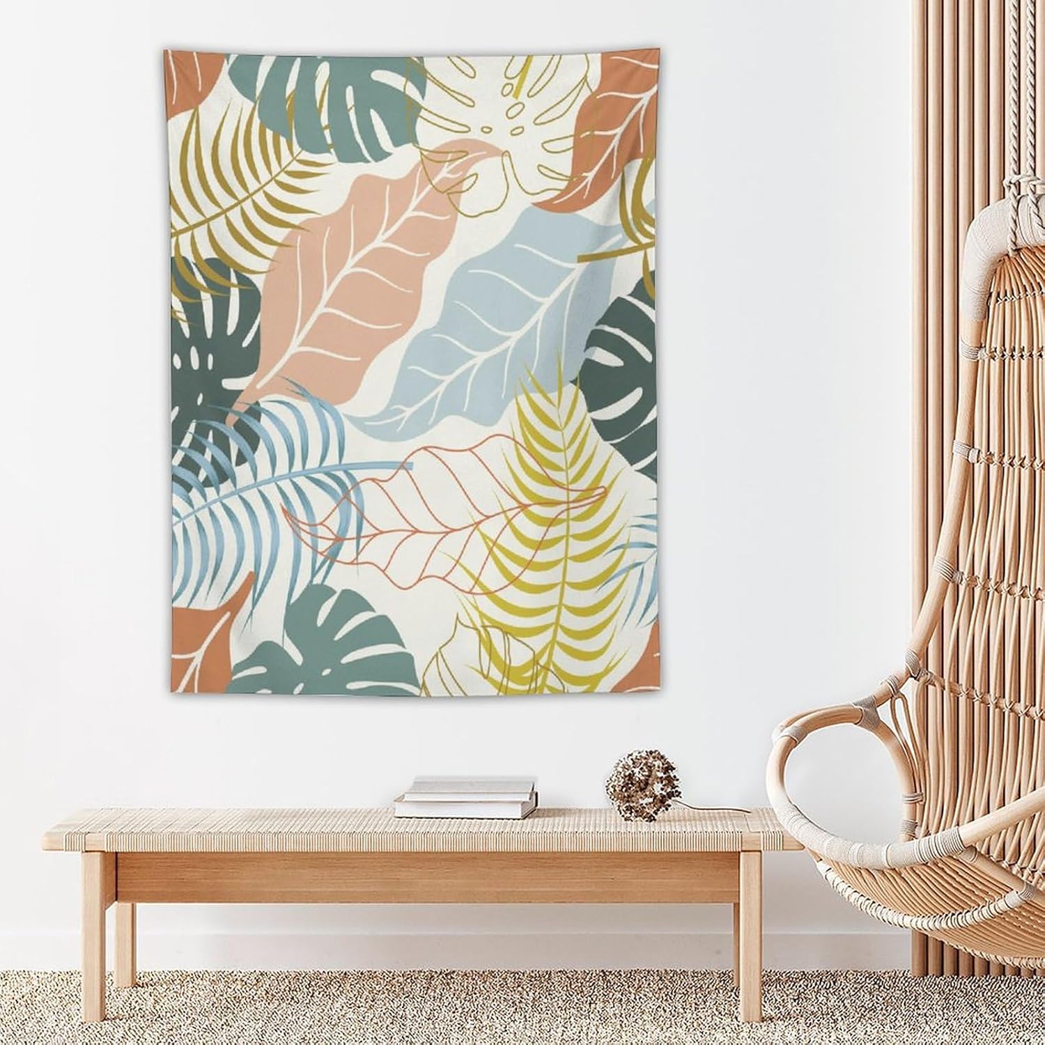 ICMOLYYENLO Boho Green Leaves Tapestry, Mid Century Abstract Tropical Palm Leaves Modern Minimalist Geometric Wall Hanging, Neutral Home Decor Art for Living Room Bedroom Dorm 60x60 Inch