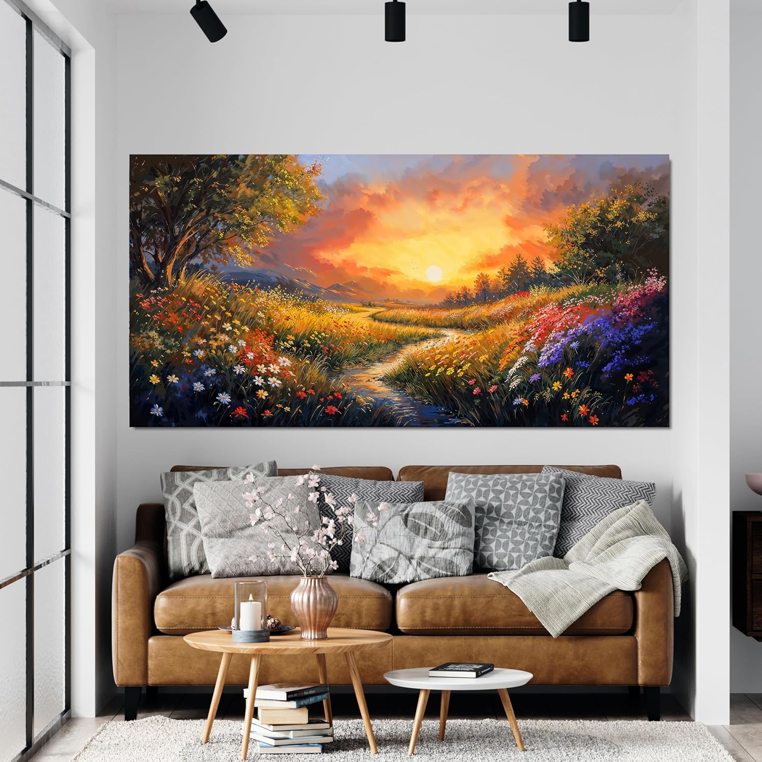Canvas Wall Art Decor Large Wall Art Pictures for Living Room Vintage Landscape Wall Art Prints Canvas Art Wall Decor Wildflower River Artwork for Walls Bedroom Home Aesthetic Wall Art Decor 20" X 40"