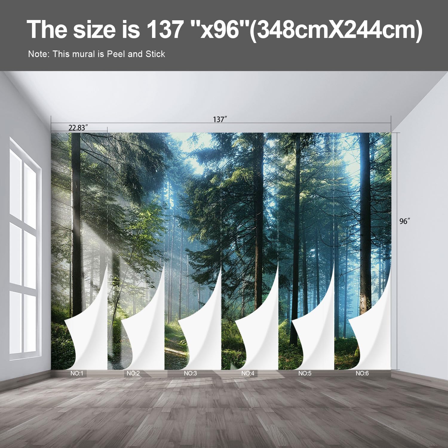 Forest Landscape Wall murals Woodland Tree Peel and Stick Wallpaper for Bedroom Living Room - 96"x137"