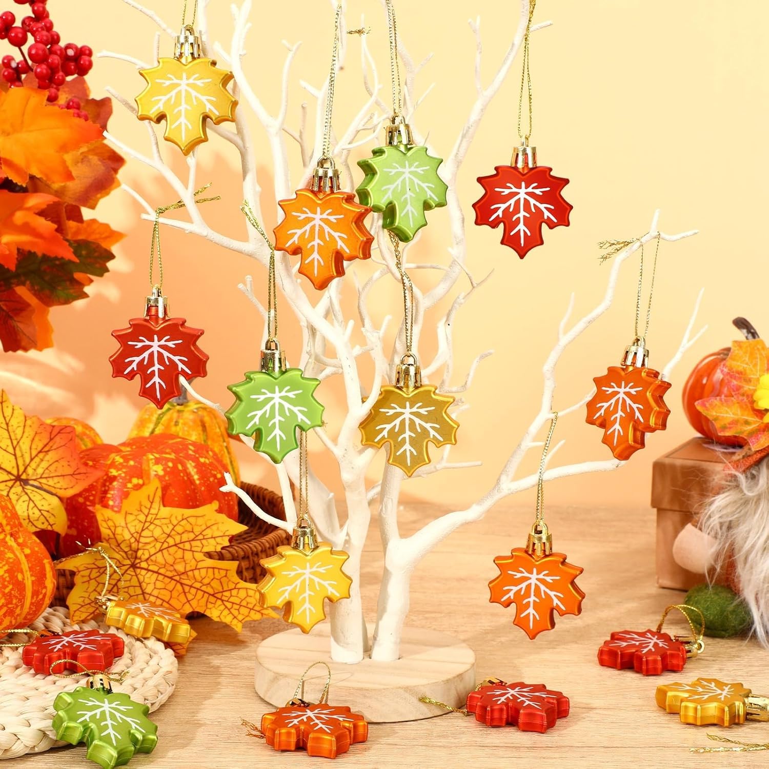 JULMELON 24Pcs Maple Leaf Ornaments, Fall Leaves Tree Decorations Autumn Harvest Hanging Ornaments with Rope Maple Pendant for Farmhouse Rustic Party Favors Craft Supplies
