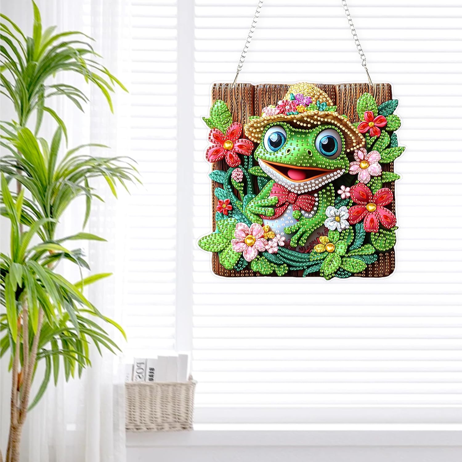 Lxmsja DIY Cute Frog Diamond Painting Hanging Ornament, Double-Sided Acrylic Flowers Diamond Art Kit, Special Shaped Drill Pendant Window Art Kit, Suncatcher Hanging Craft Decoration 8x8 inch