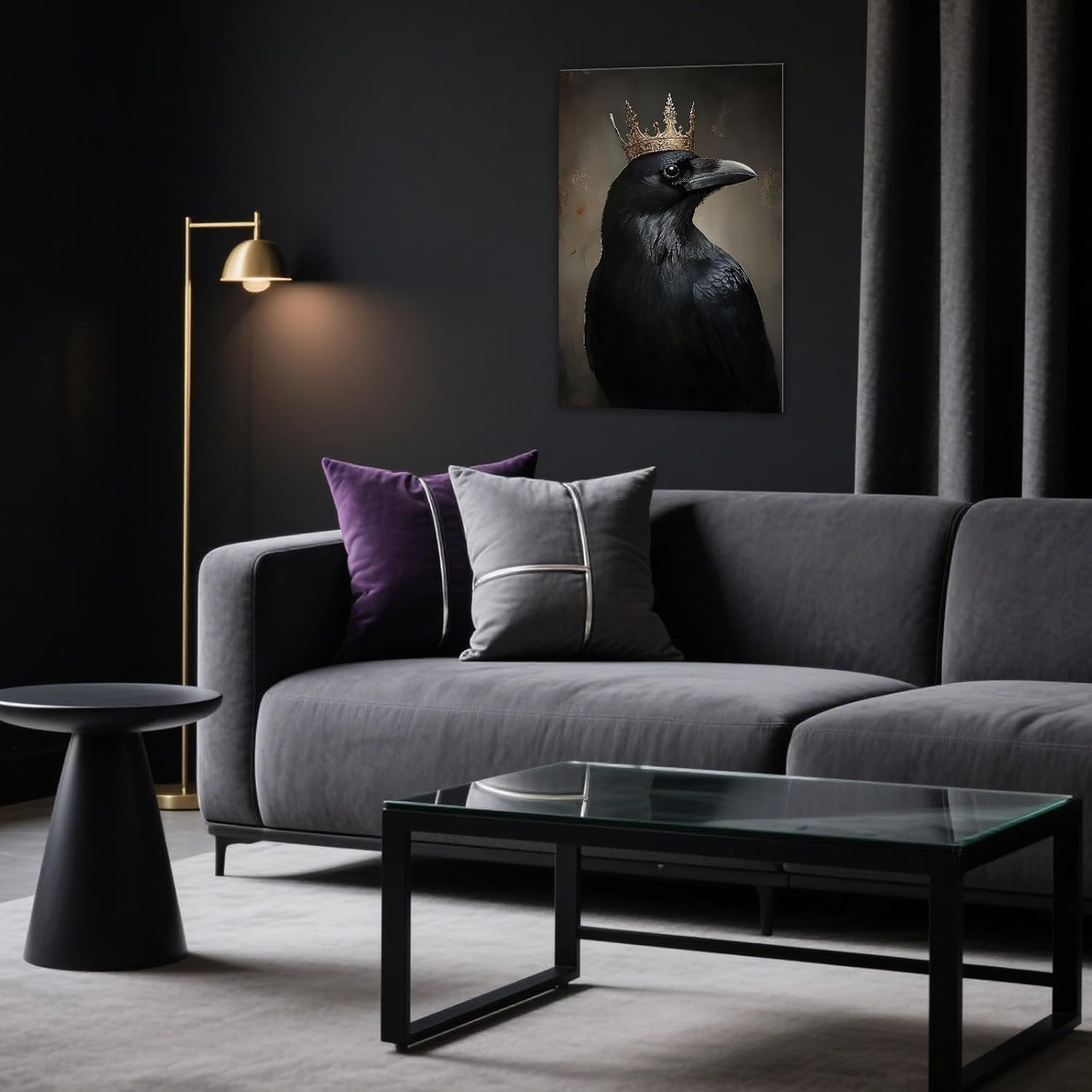 OAAPITI Raven King Wall Art Mysterious Black Bird Painting Dark Gothic Animal Canvas Print for Living Room Bedroom Home Office Inspirational Decor(Artwork-8,16"x24")