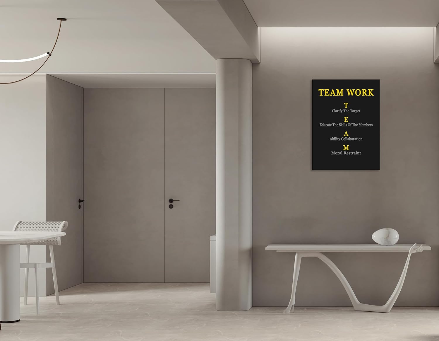 WYJDFART Motivational Wall Art Team Work Enterprise Poster Inspirational Quotes Canvas Poster for Company Office Group Bedroom Living Room Printed Artwork Framed Ready to Hang [30" W X 40" H]