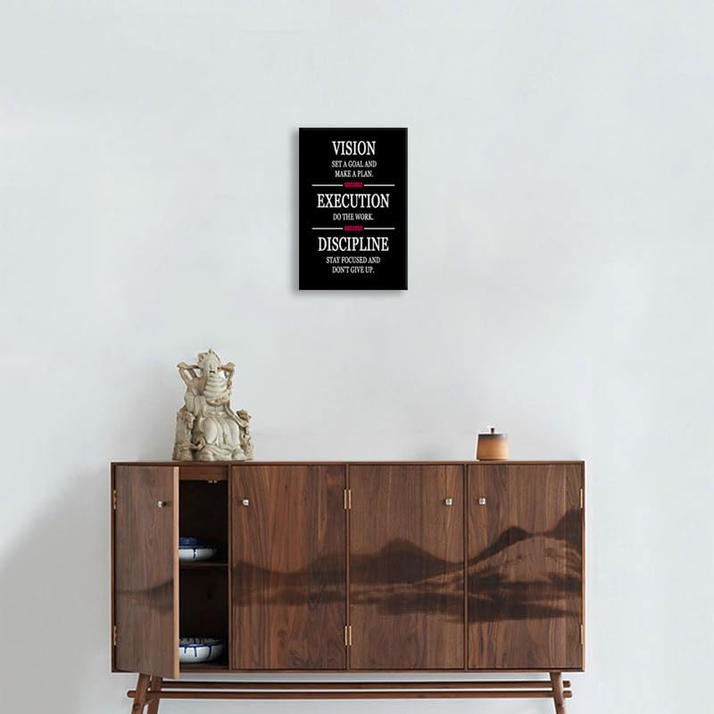 Motivational Wall Art Formula for Success is VISION EXECUTION DISCIPLINE Inspirational Wall Decor Printed Canvas Poster for Company Office Bedroom Living Room Framed Ready to Hang [12" W X 18" H]