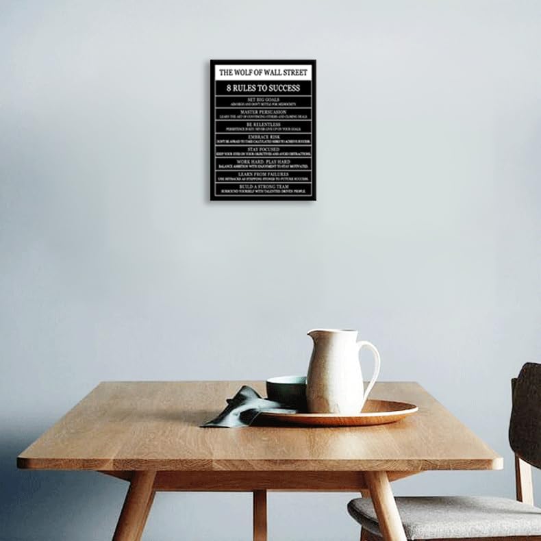 Motivational Wall Art The Wolf Of Wall Street 8 Rules To Success Printed Canvas Poster Inspirational Wall Decor for Office Hallway Gym Bedroom Living Room Framed Ready to Hang[18" W X 24" H]