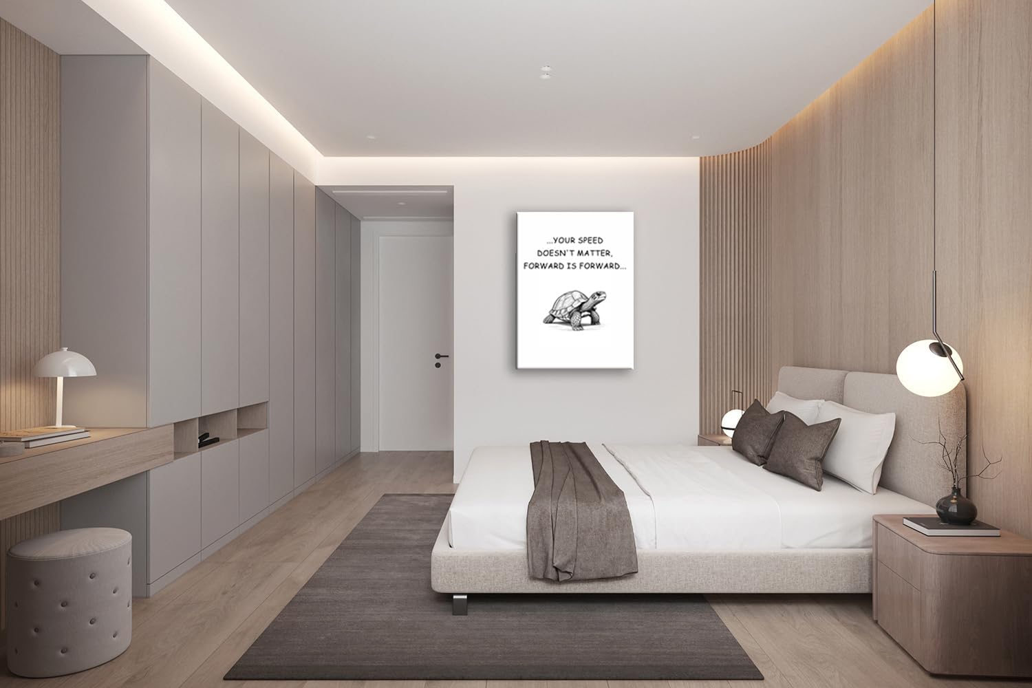 Inspirational Canvas Poster Turtle Quote ‘SPEED DOESN'T MATTER, FORWARD IS FORWARD...’Motivational Wall Art Printed Modern Artwork for Office School Home Decor Framed Ready to Hang[30" W X 40" H]