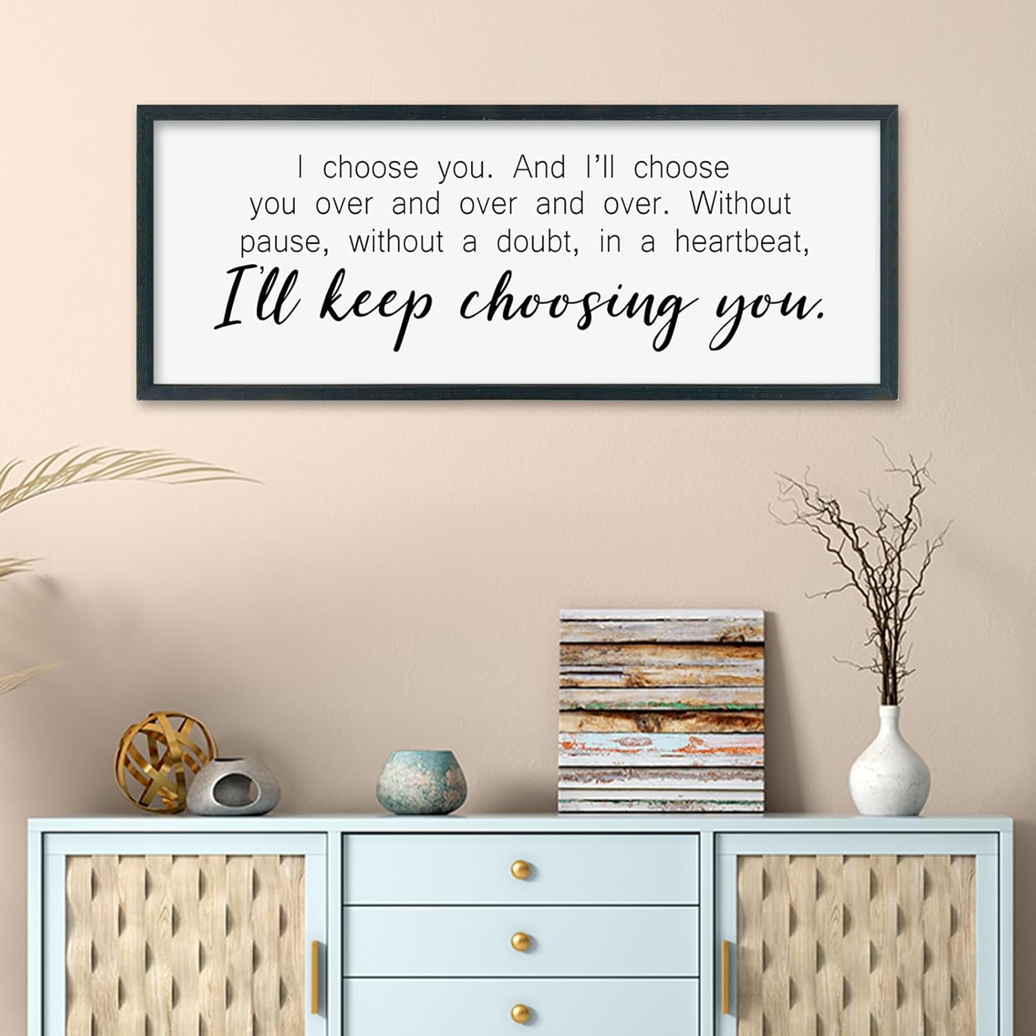 comurdyo I'll Keep Choosing You Sign 32"X12" for Master Bedroom Above Bed Wall Decor I Choose You Large Wood Framed Wall Hanging Art (Black)
