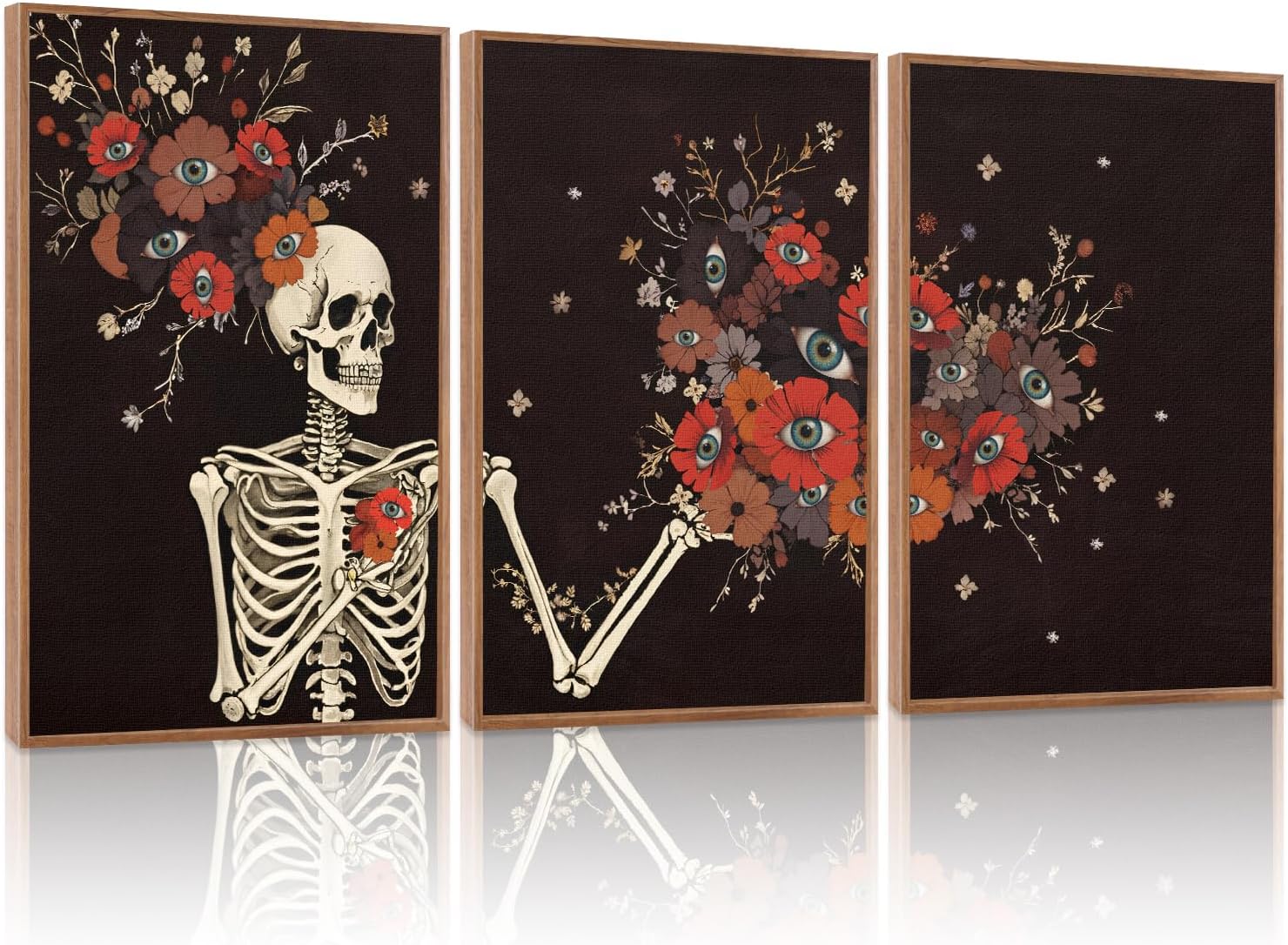 - [Romantic Dark Skull Flower Wall Art Set] This horror bone wall painting features a Gothic romantic style,mainly composed of bones and flowers with eyes,which can endow your interior space with Gothic beauty.Incorporate it as part of your decoration,and it will surely fill your room with the aesthetic art of Halloween