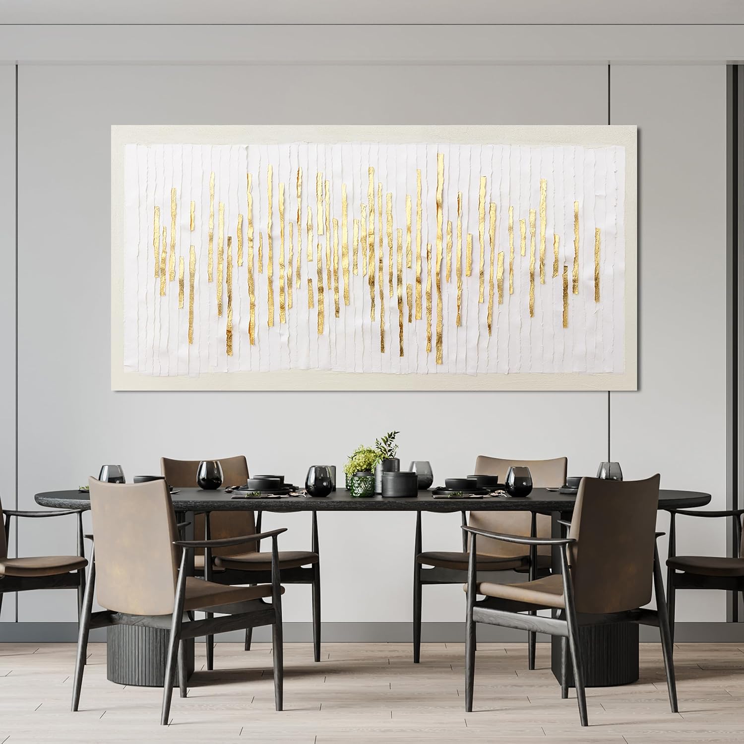Canvas Wall Art Decor Modern Large Wall Decor For Living Room Gold Abstract Wall Art White Textured Wall Art Large Artwork for Walls Canvas Prints Art Work For Home Office Wall Decor 29" X 58"