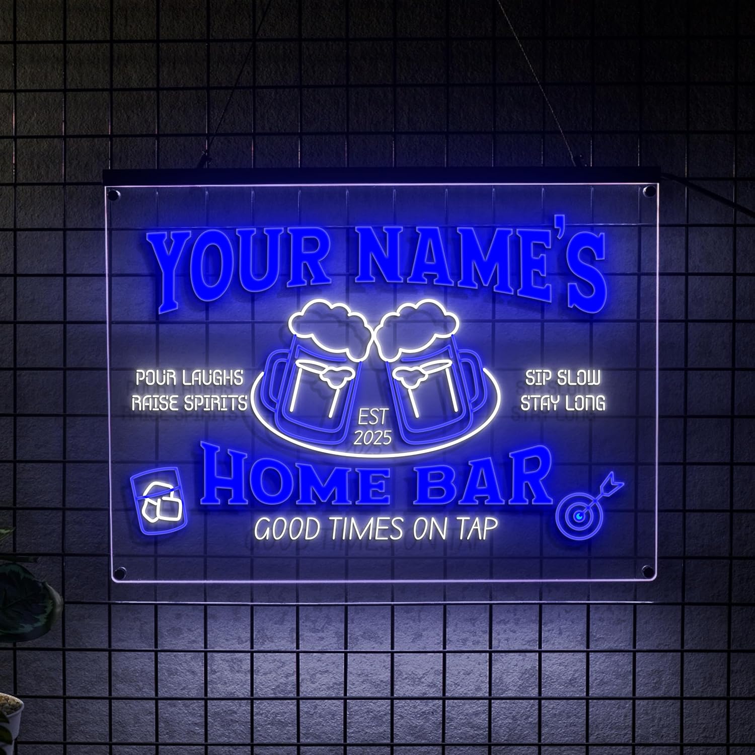- Wide range of customizable bar signs for every space and mood. Choose from 1 or 2 color personalized neon bar signs, perfect for any custom pub sign or personalized beer sign. Available in 6 LED colors—blue, green, yellow, red, pink, and white. Each sign supports up to 2 colors, letting you personalize your home bar with the perfect mix.