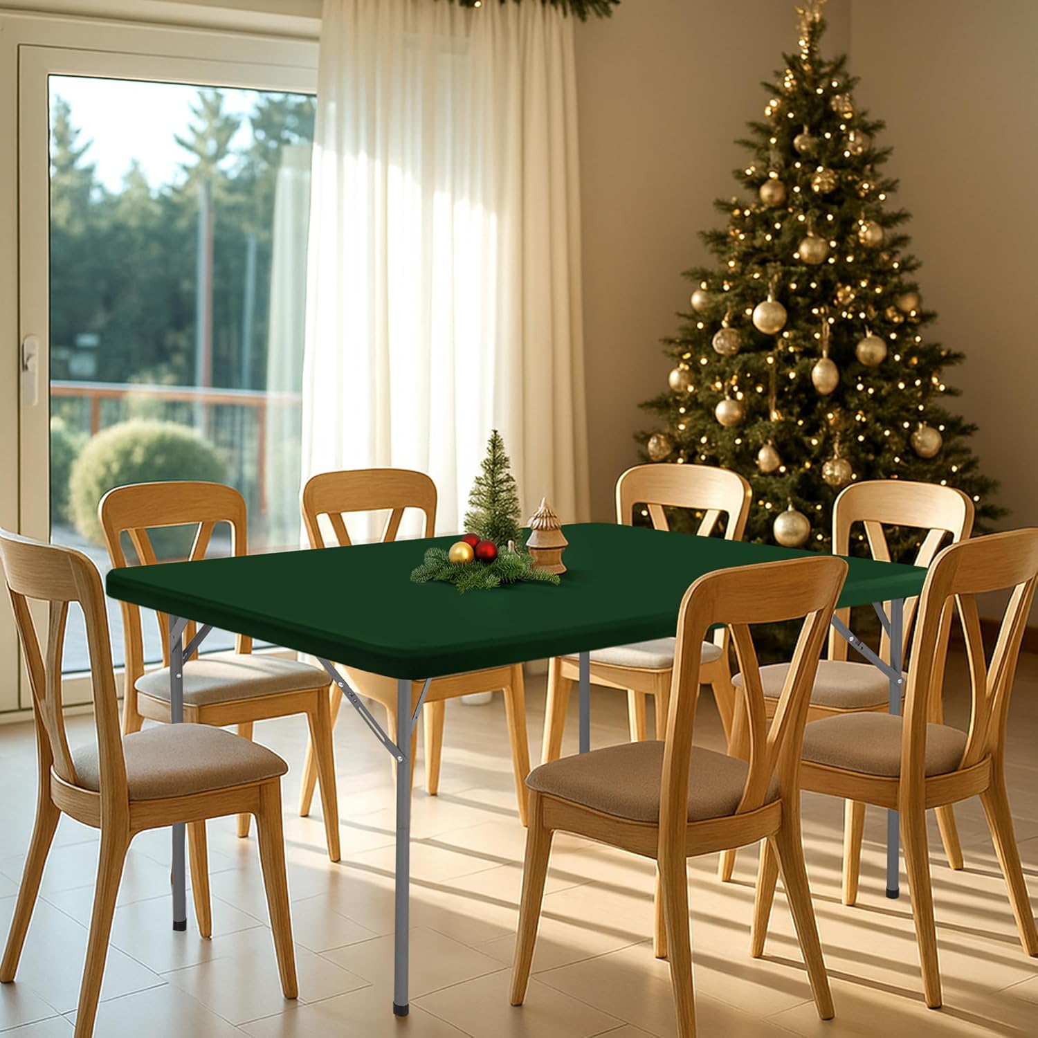 Fitted Tablecloth for 8 Foot Rectangle Tables-6 Pack Hunter Green Elastic Outdoor Picnic Table Cover-Spandex Stretch Folding Table Cloths 8ft for Camping Dining Patio Kitchen Banquet Party