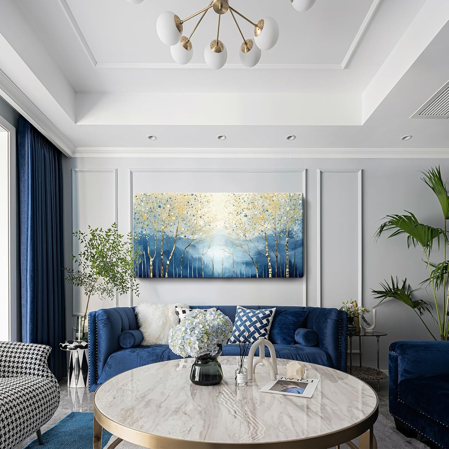 amatop Extra Large Wall Art for Living Room – Modern Forest Landscape Picture Abstract Nature Tree Scenery Canvas Art Prints Blue Wall Decor Oversized Horizontal Birch Artwork Bedroom Office 58x29 Inch