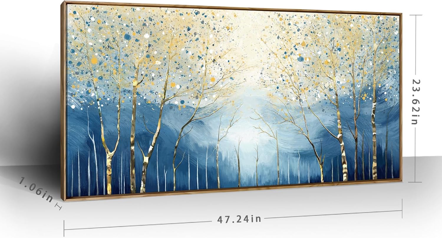 amatop Large Framed Abstract Canvas Wall Art Navy Blue Art Print Modern Nature Tree of Life Artwork Birch Contemporary Landscape Picture for Office Living Room Bedroom Hallway Home Decor 48x24 Inch