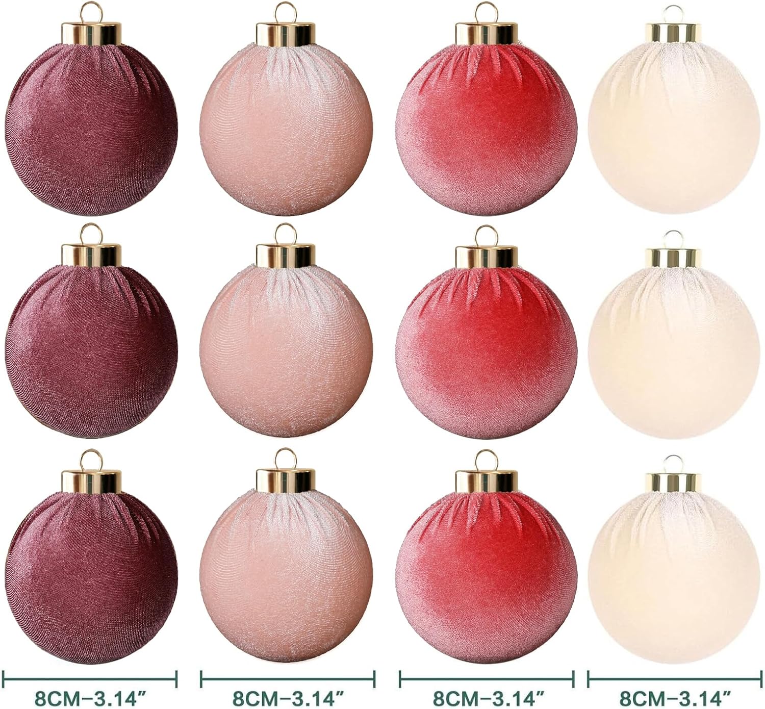 12Pcs Velvet Christmas Ornaments Balls,Pink Christmas Tree Decoration Shatterproof Ball with Hanging for Party Decor Multicolor Pink Beige 80mm/3.15in