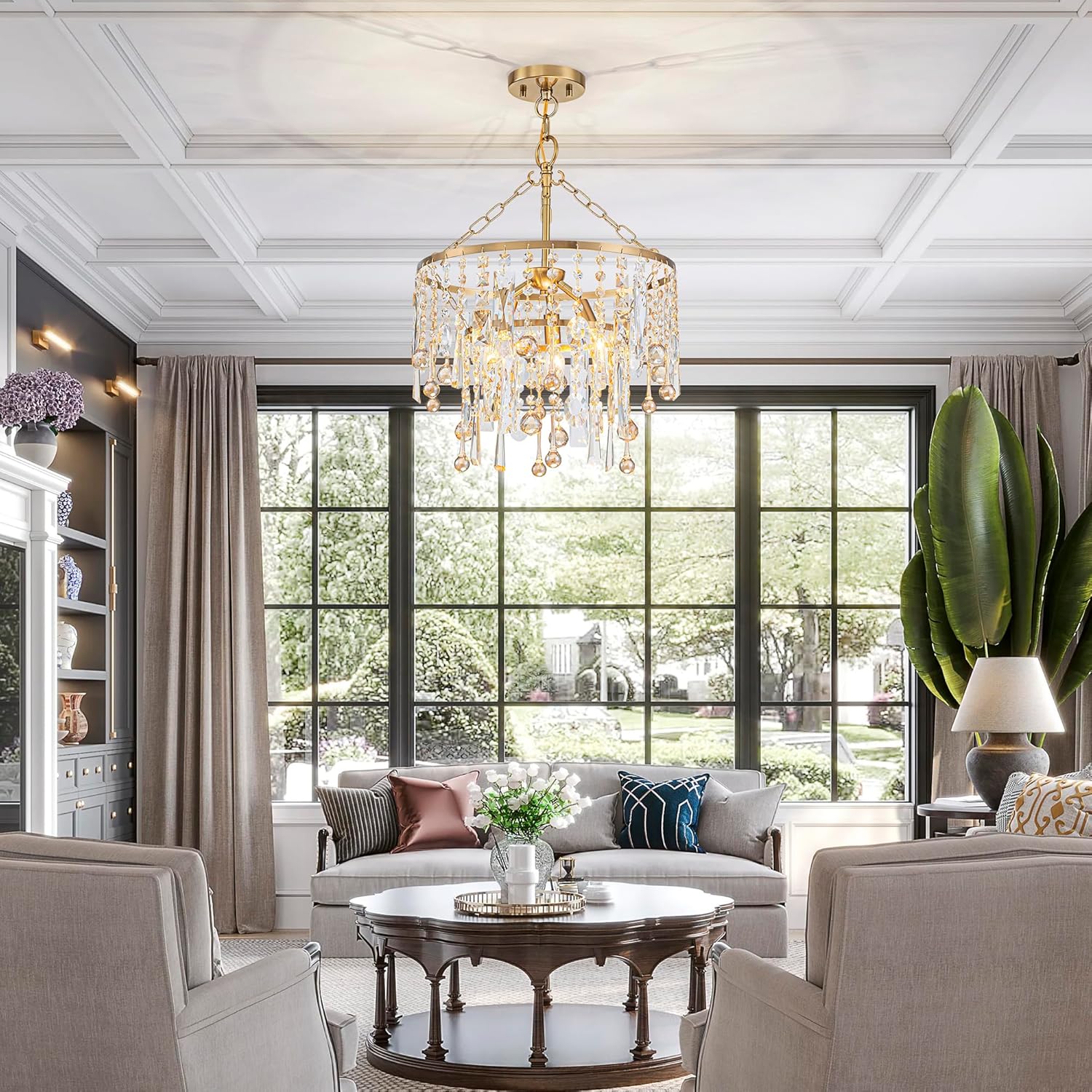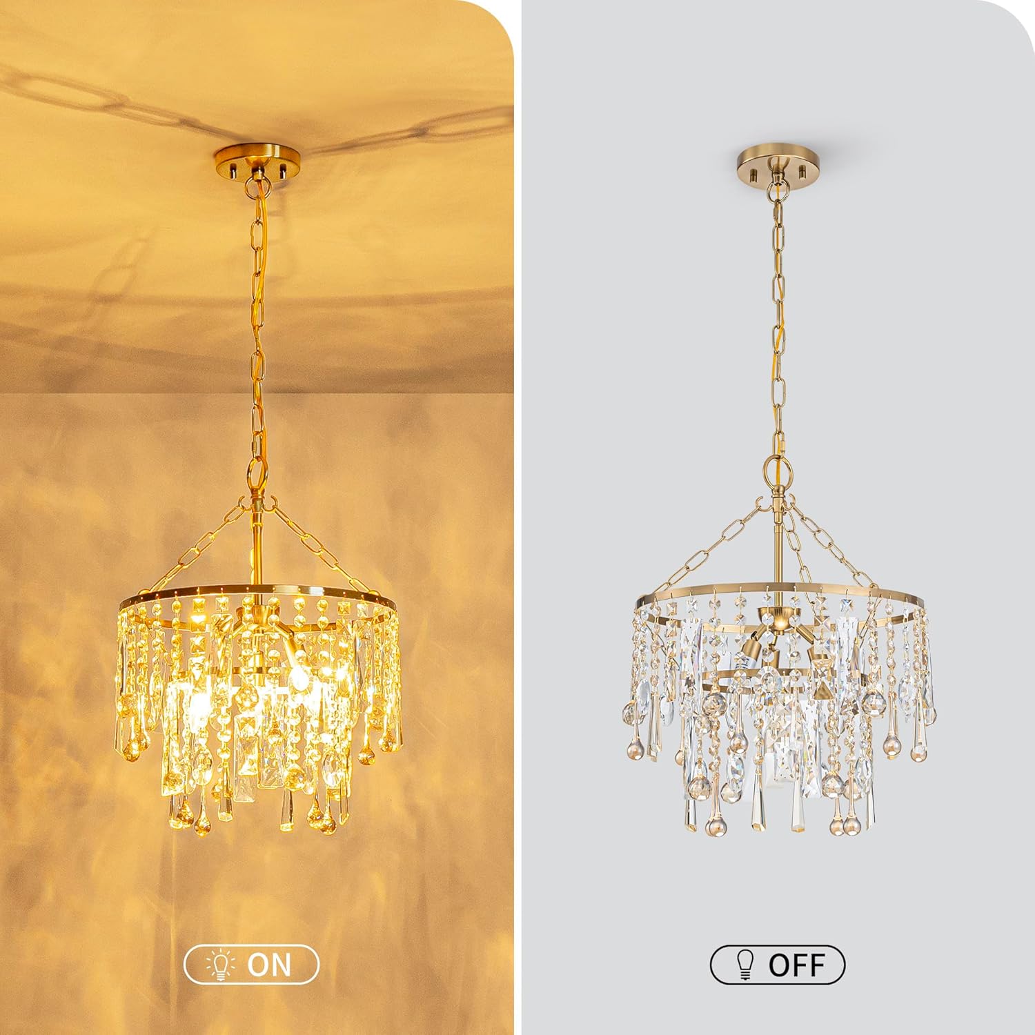 - Gorgeous Appearance: This crystal chandelier boasts numerous K9 Crystal ornaments (drooping strips & round beads) that refract brilliant light like a captured galaxy indoors. Framed by Durable Metal Material in a brass hue, with Unique Processing on metal connections, the design balances luxury and delicacy. When lit, crystals and metal cast dreamy light and shadow; when unlit, transparent crystals + warm - gold metal look as elegant as artwork. It complements dining rooms, living rooms, and foyers, infusing spaces with retro - luxury charm.