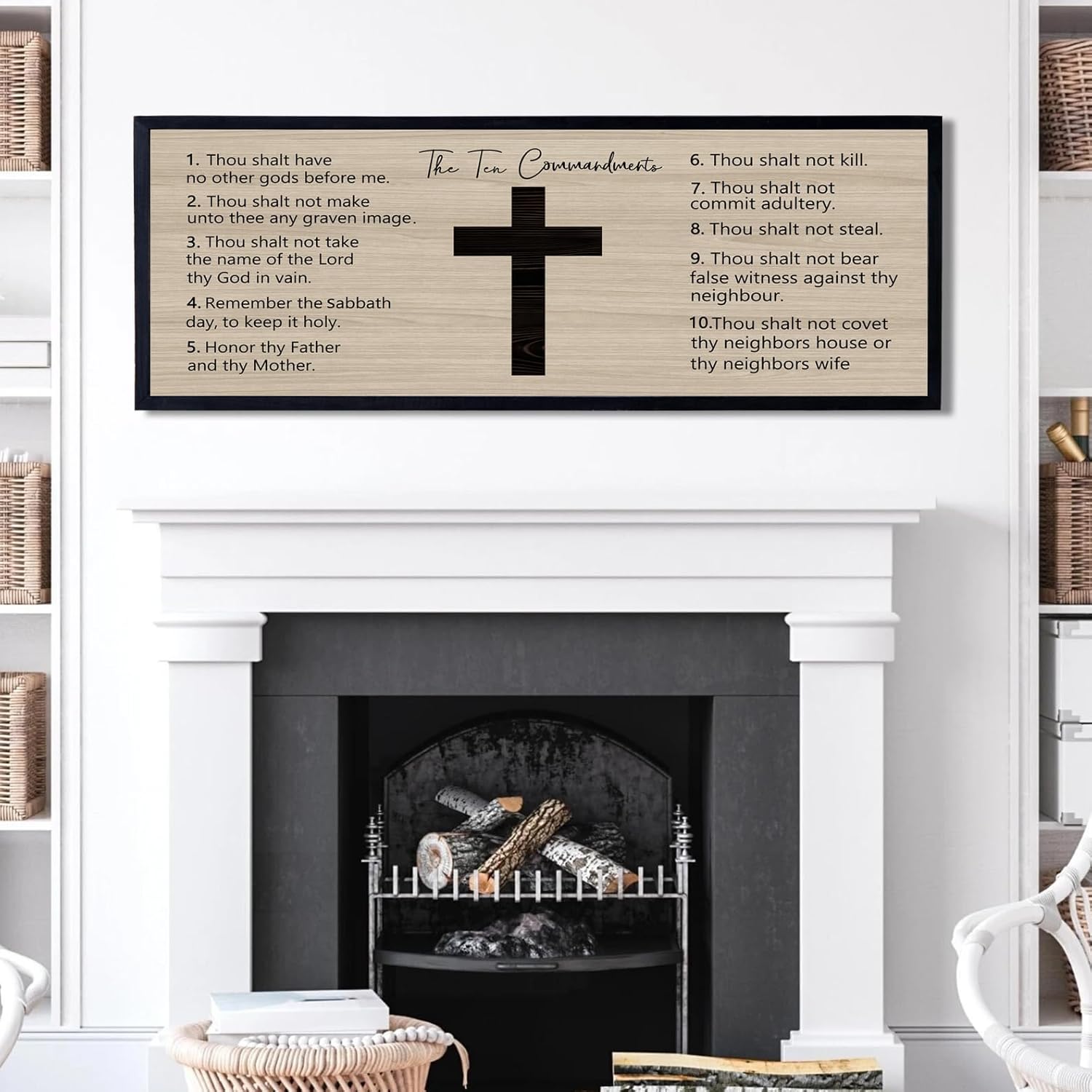 Ten Commandments Rustic Bible Verse Framed Wall Art 40" x 15" Black Religious Christian Slogan Representing God Jesus Christ Prayer Vintage Holy Inspirational Catholic Scripture Decor