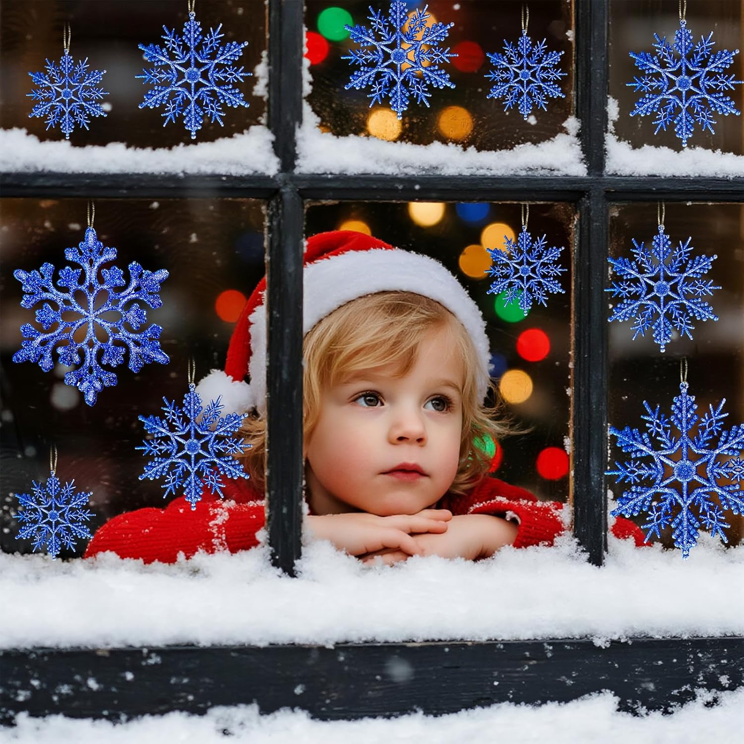 Christmas Tree Decorations Snowflake Ornaments 36Pcs Blue Silver Glitter Plastic Hanging Snowflakes from Ceiling Snow Flakes Decorating Hanging for Winter Wonderland Decorations Indoor Outdoor Decor