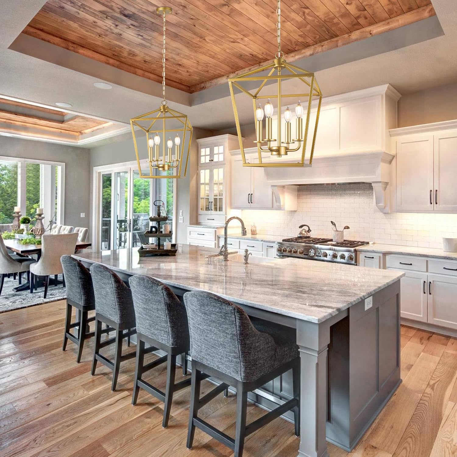 - ✔【Statement-making Light】The gold foyer chandelier with 4-light interior candelabra provides abundant light to your home while lending a rustic flair in an iconic lantern silhouette. With its dense modern farmhouse style, it is both a lighting fixture and a great decoration in any space like dining room, kitchen island, living room, bedroom, hallway and foyer. Great choice for your home decor.
