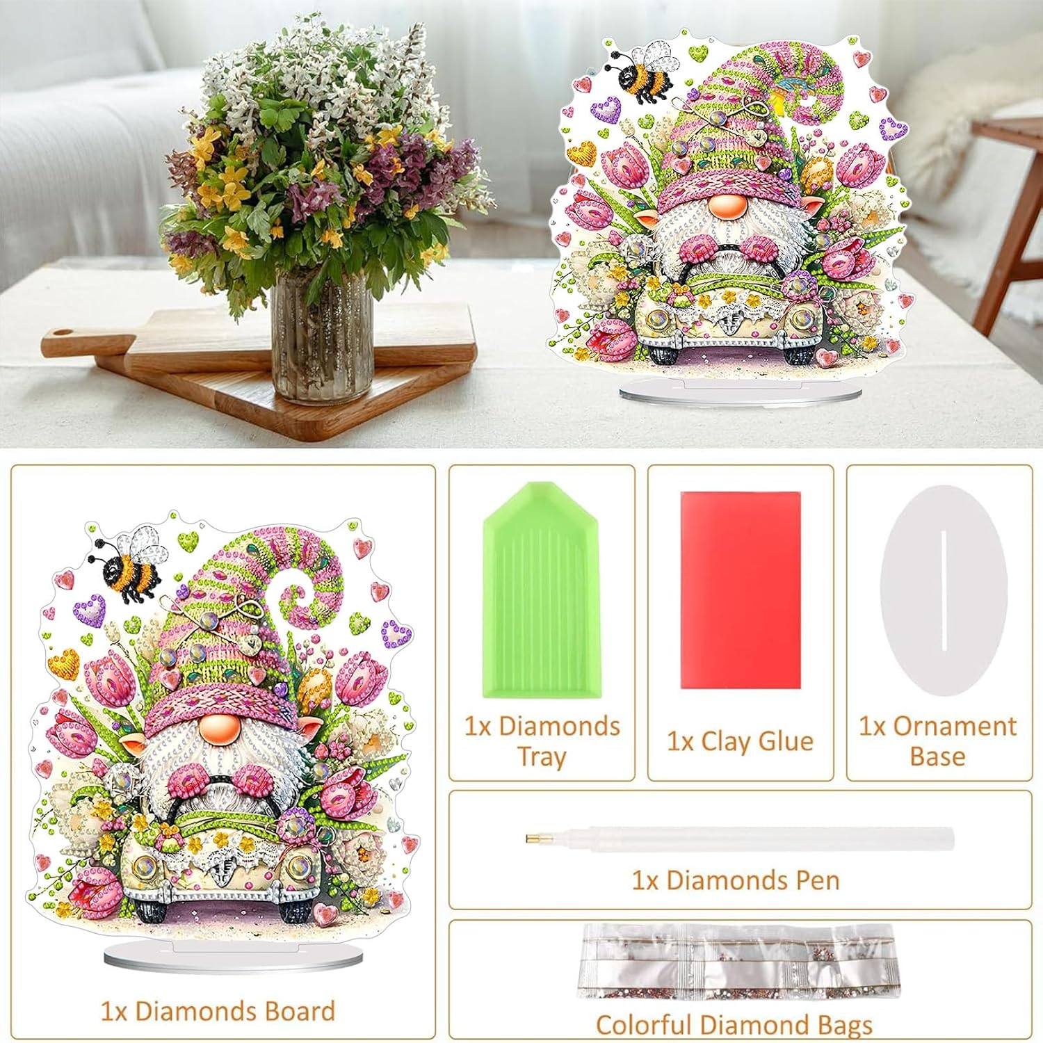 Diamond Painting Kits for Adults Beginners, 5D Full Drill Dwarf Crystal Art Desktop Ornament, DIY Single Sided Home Office Desk Decor, Creative Craft Gift Set with Tools