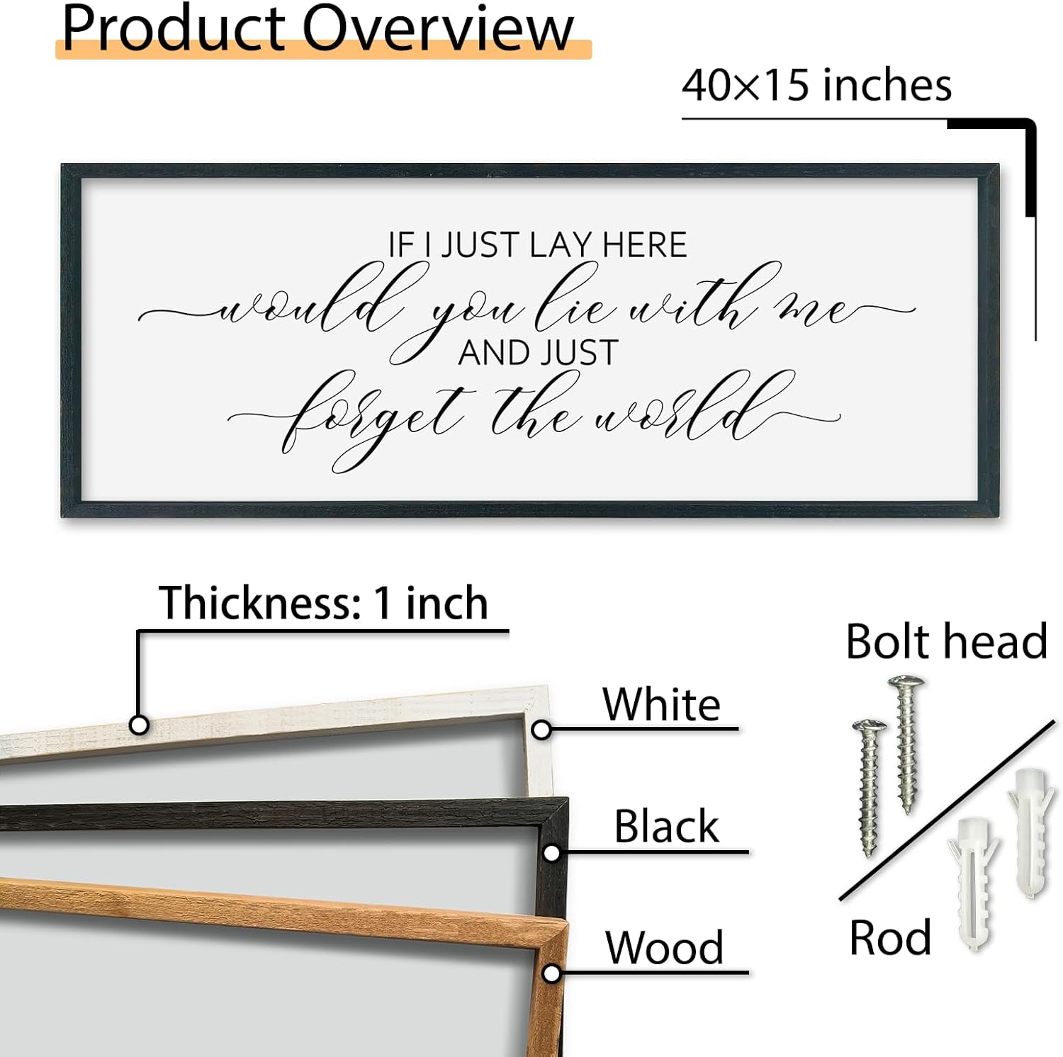 SRSZHIYUE If I Lay Here Would You Lie With Me Sign Bedroom Wall Decor Art 40"×15" Large Wood Framed Wall Hanging (Black)