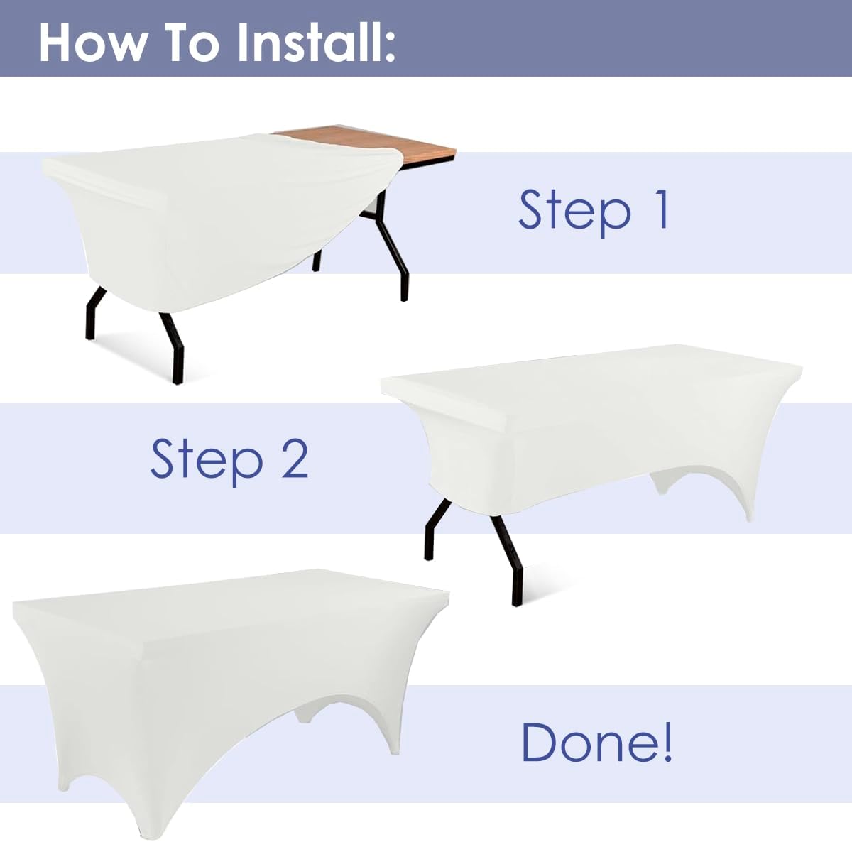 - Perfect Fit and Secure Design: Designed for 8-foot tables (96L x 30W x 30H Inches), this two-way stretch spandex cover features reinforced leg pockets to keep it firmly in place, preventing slipping for a sleek, professional look.
