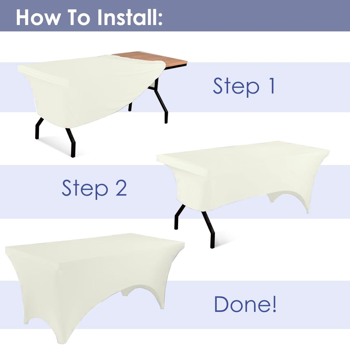 - Perfect Fit and Secure Design: Designed for 8-foot tables (96L x 30W x 30H Inches), this two-way stretch spandex cover features reinforced leg pockets to keep it firmly in place, preventing slipping for a sleek, professional look.
