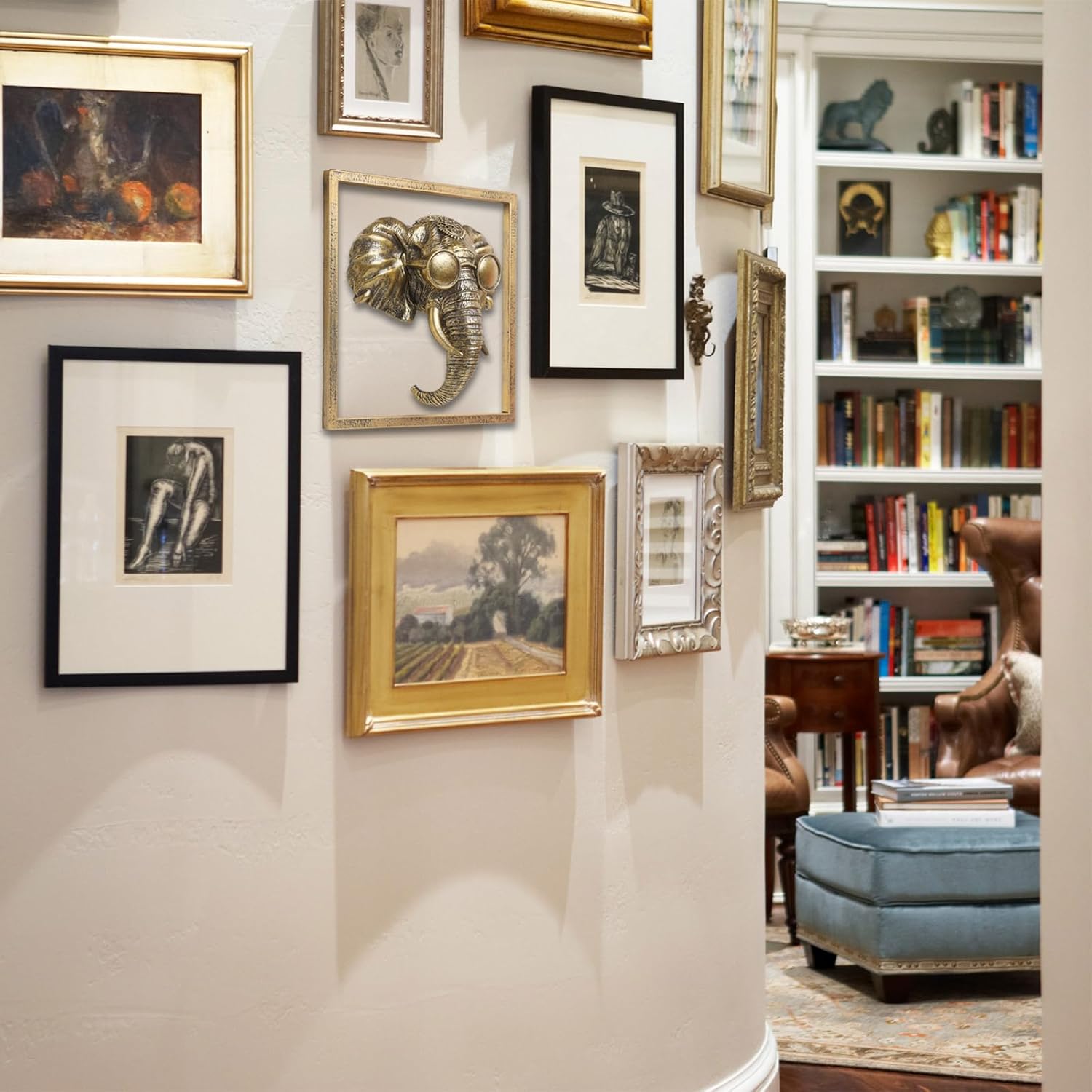 Animal Heads Wall Decor (Includes Metal Frame) Resin Animals Sculptures Head Wall Hanging Decoration Gold vintage Wall Sculpture for Living Room Bedroom Office (Elephant)