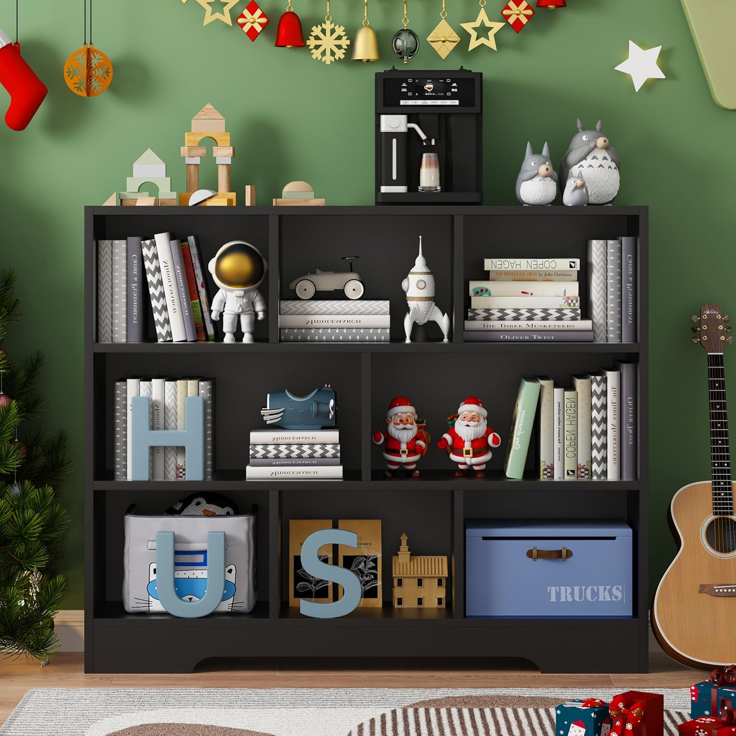 Book Shelf, 8 Cubes Storage Organizer, 3-Tier Open Shelf Wooden Bookcase, Freestanding Black Bookshelf Cube Shelf for Bedroom, Living Room, Home Office