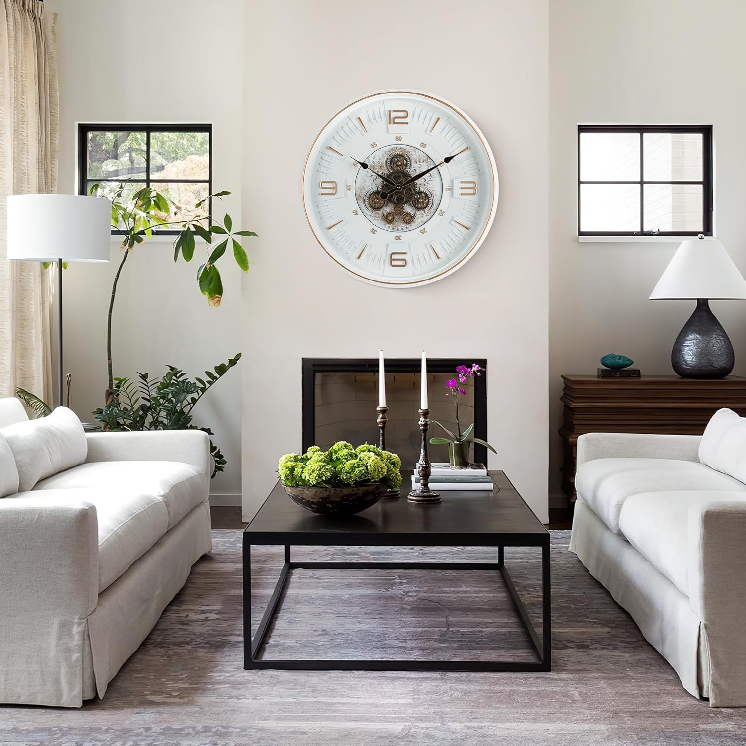 - Effortless Installation & Battery Operation: Ready to hang right out of the box! Simply use the integrated keyhole hanger. Requires 3 AA batteries: 1 for the clock movement, 2 dedicated to powering the mesmerizing gear motion. (Batteries Not Included).