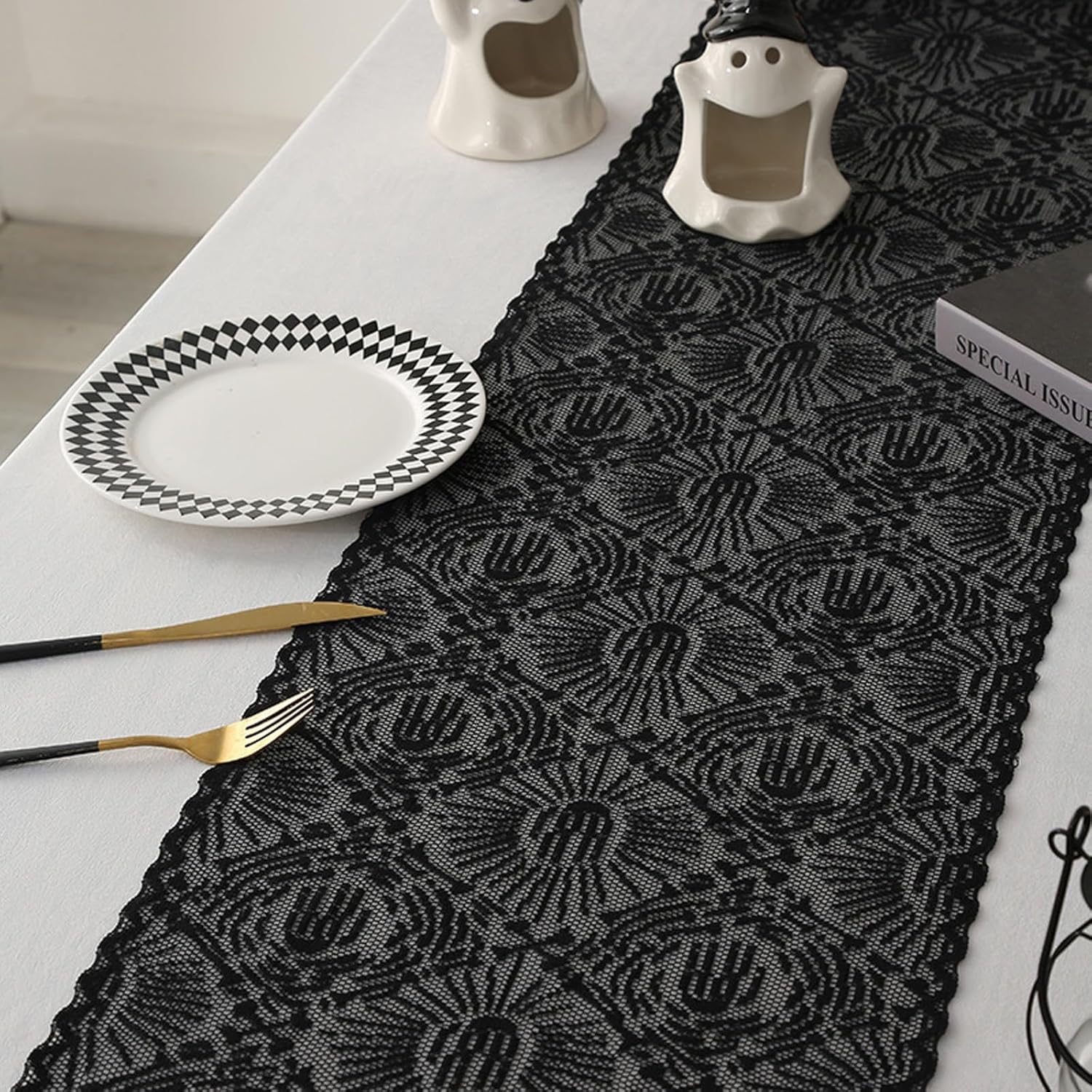 - Halloween-Themed Design: This Halloween lace table runner features a classic ghost hand design, adding a mysterious and festive atmosphere to Halloween parties, birthday gatherings, and other occasions.