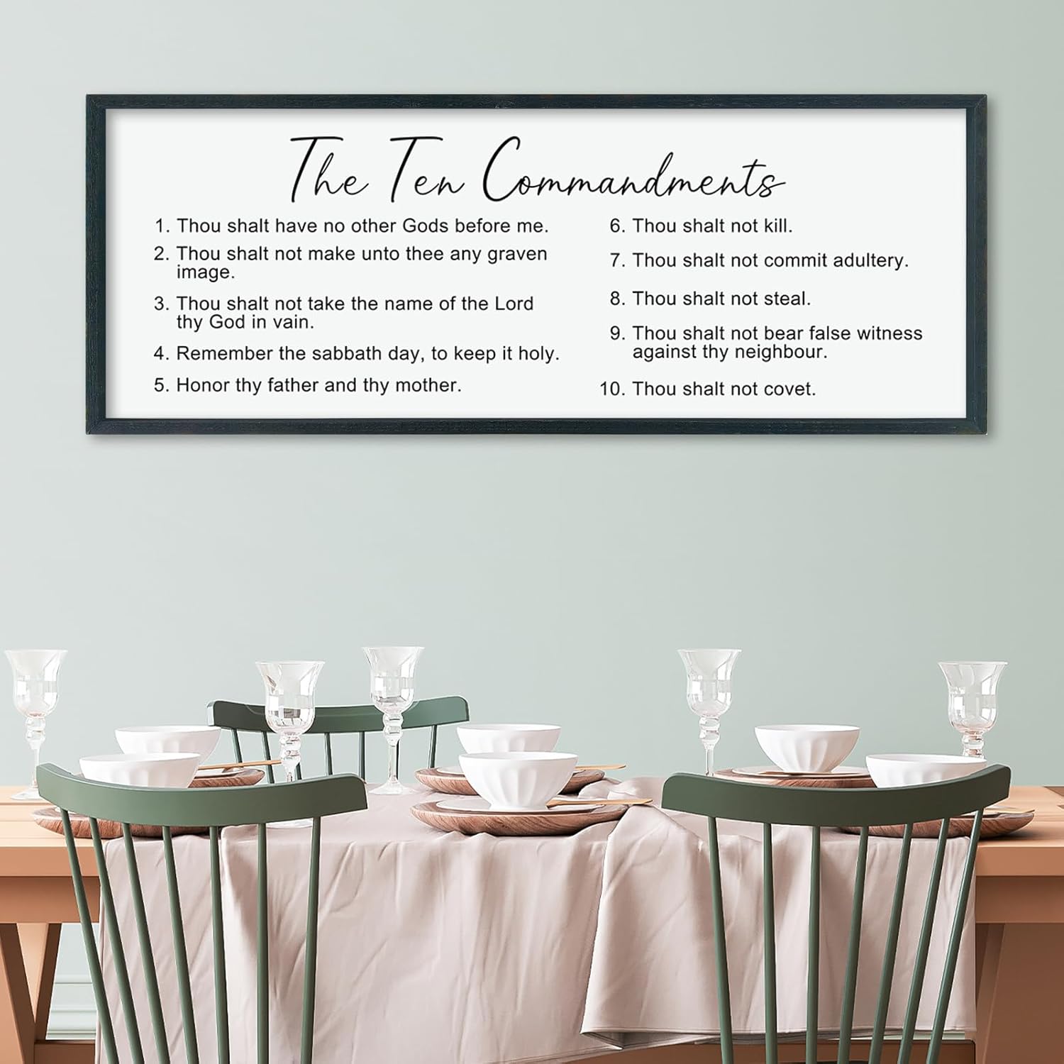 LuZhiQiang The Ten Bible Verse Wall Decor 40"×15" God Jesus Prayer for Christian Saying Catholic Scripture Sign Large Wood Framed Wall Hanging Art (Black)