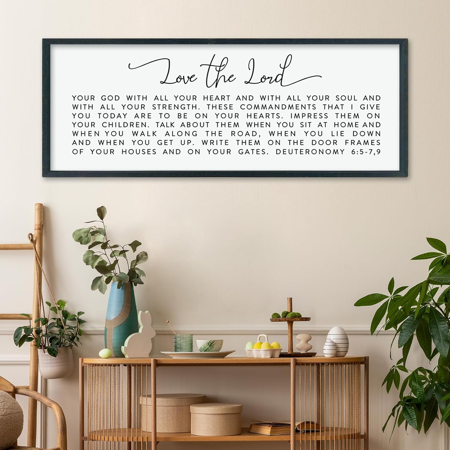 LuZhiQiang Love The Lord Your God With All Your Heart Wall Decor Art 40"×15" Deuteronomy 6:5-7, 9 Scripture Sign Bible Verse Large Wood Framed Wall Hanging (Black)