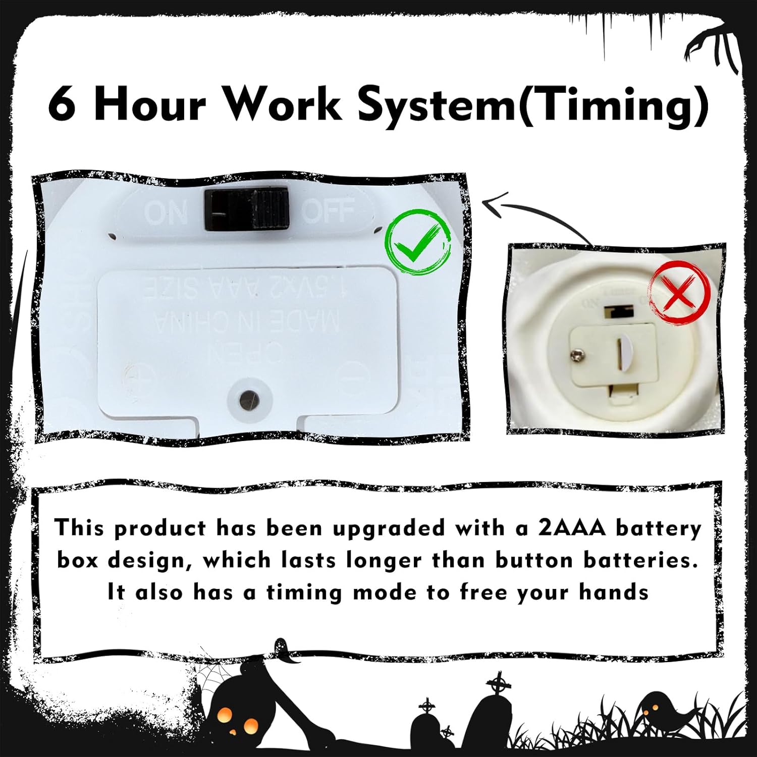 - Lighting Features: Each Halloween ghost decor is well-packaged with 2AAA battery box(Batteries not included). We use a more durable battery box design with larger battery capacity to keep the light on longer.Each ghost has an on/off switch on the bottom, easy to replace the batteries
