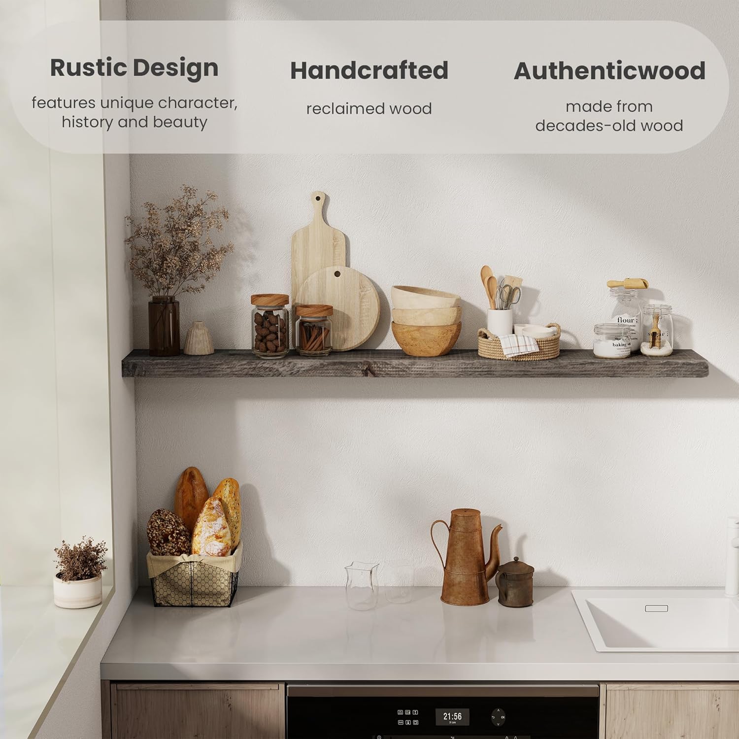 - Multifunctional & Versatile - Designed for both decoration and organization, our wood floating shelves enhance any room in your home while providing additional storage space in the livingroom, kitchen, garage or any space that needs a touch of rustic charm
