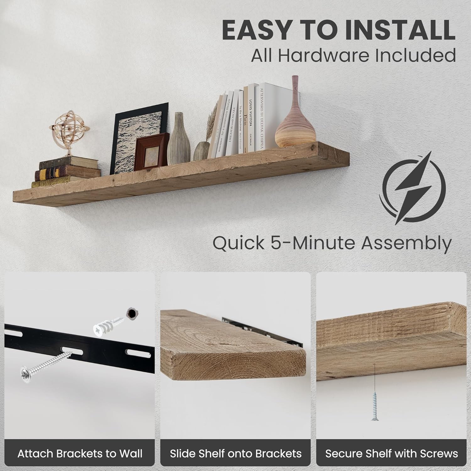 - Easy to Install - Our hanging floating shelves come with easy-to-follow installation instructions, two hand-crafted reclaimed wood shelves, two metal brackets, screws, anchors, and a level. Our dedicated customer support team is always available to assist with any questions or concerns