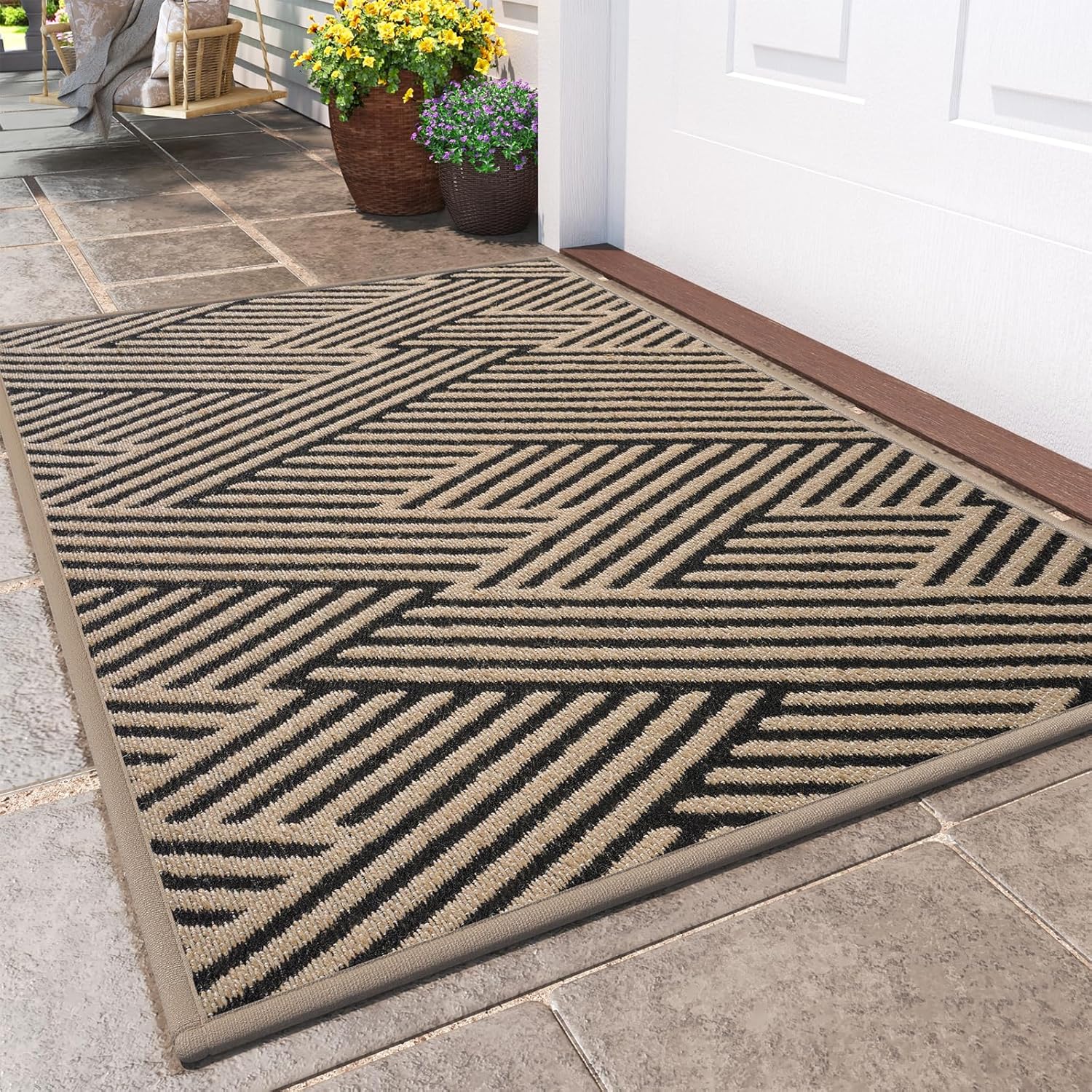 Front Door Mat Outside Entrance, Non Slip Rubber Backing, Trap Dirt and Moisture, Easy Clean Low Profile Welcome Floor Mats for Patio Porch Indoor Outdoor Entry Mat, 24x35 Inch, Brown