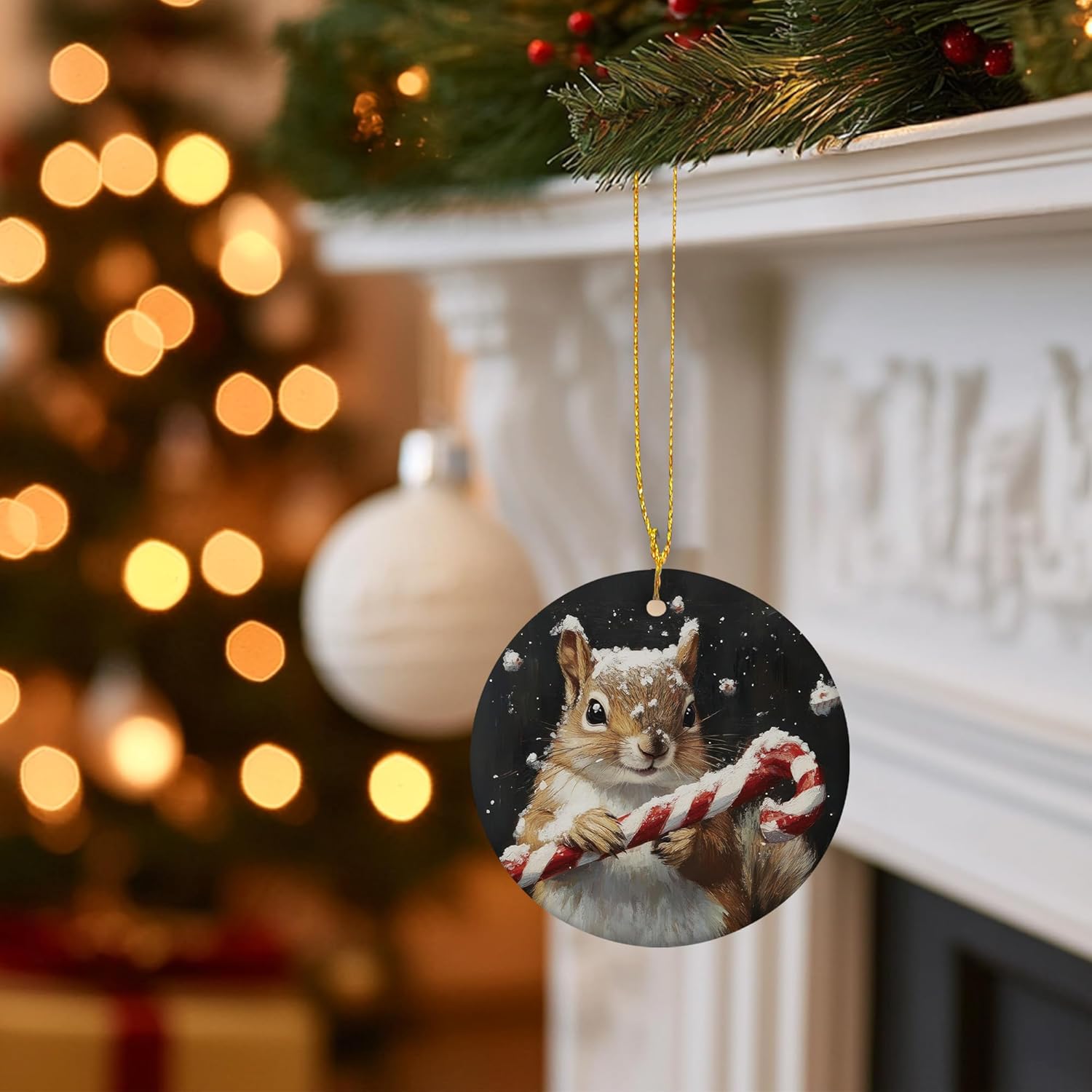 Christmas Squirrel Ceramic Ornament Gifts, Retro Rustic Winter Christmas Squirrel Decorative Hanging Ornaments for Xmas Tree Holiday Party Decoration, Animal Xmas Tree Decorations