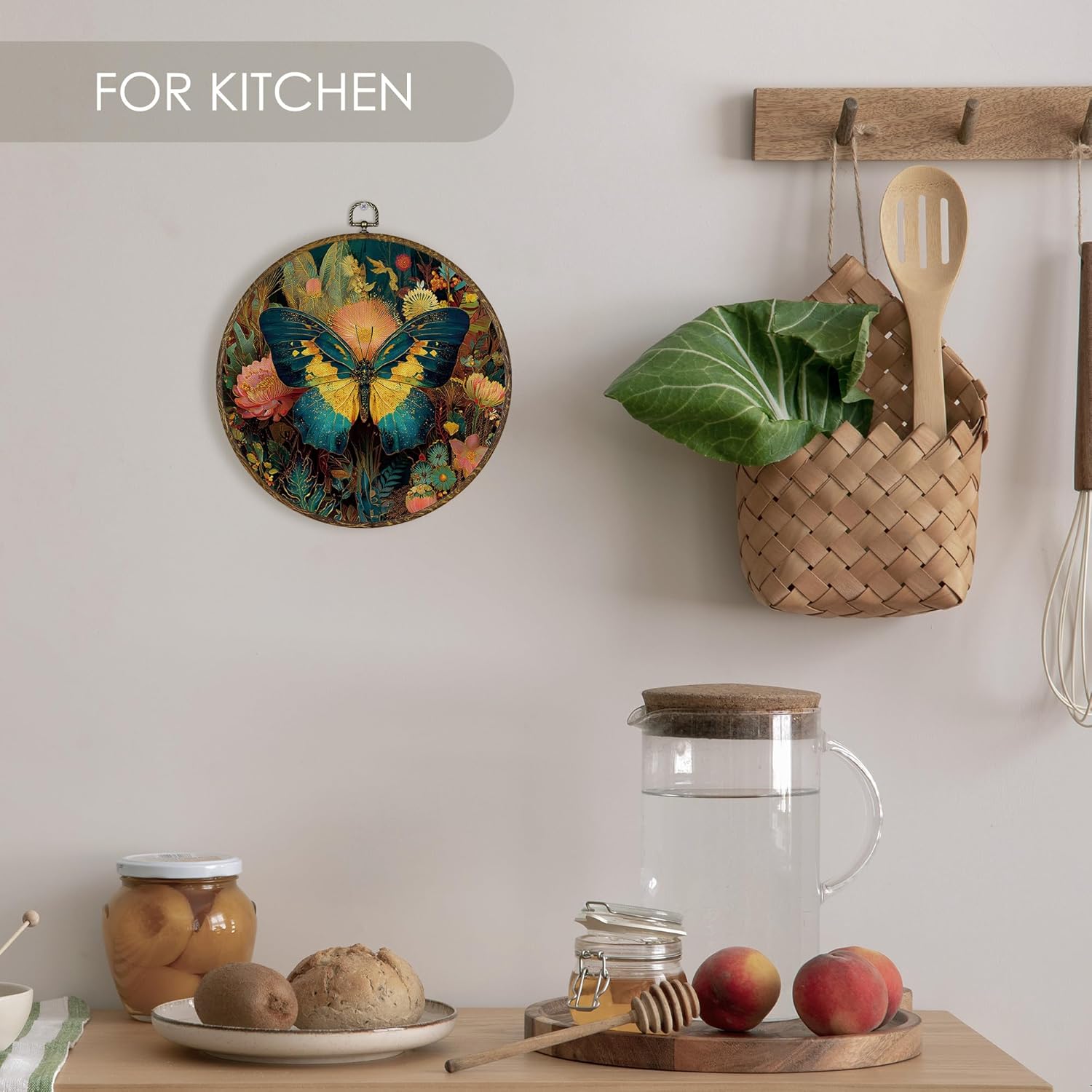 Fewgb Vintage Moody Butterfly Round Wall Art Decor Framed for Bedroom Living Room Bathroom, Dark Cottagecore Academia Canvas Wall Art Prints Picture, Gothic Hanging Room Decor Artwork 10x10
