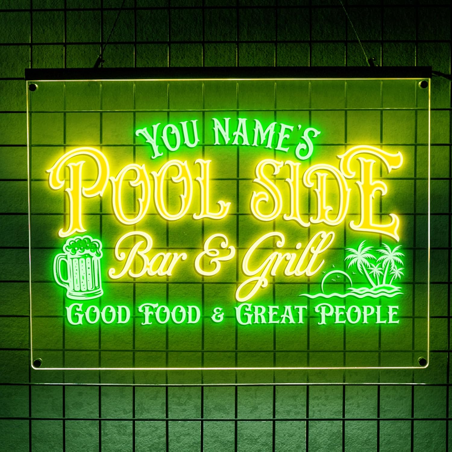 Personalized Pool Side Bar & Grill Neon Sign, Custom LED Light for Backyard Patio, Outdoor Bar Decor, Fun Gift for BBQ & Beer Lovers