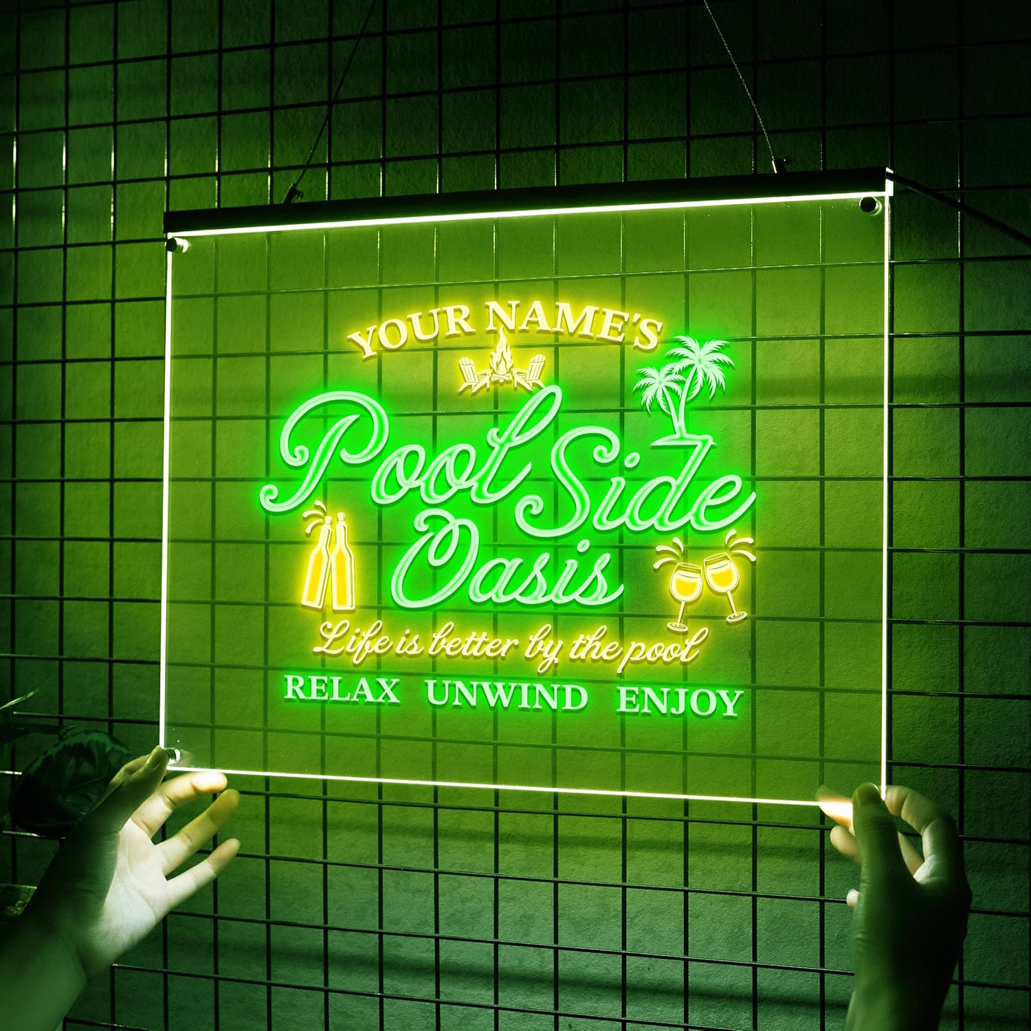 Personalized Pool Side Oasis Neon Sign, CustomLED Name Light for Backyard Patio Bar, Tropical Pool Decor, Relaxation Sign, Gift for Summer Lovers