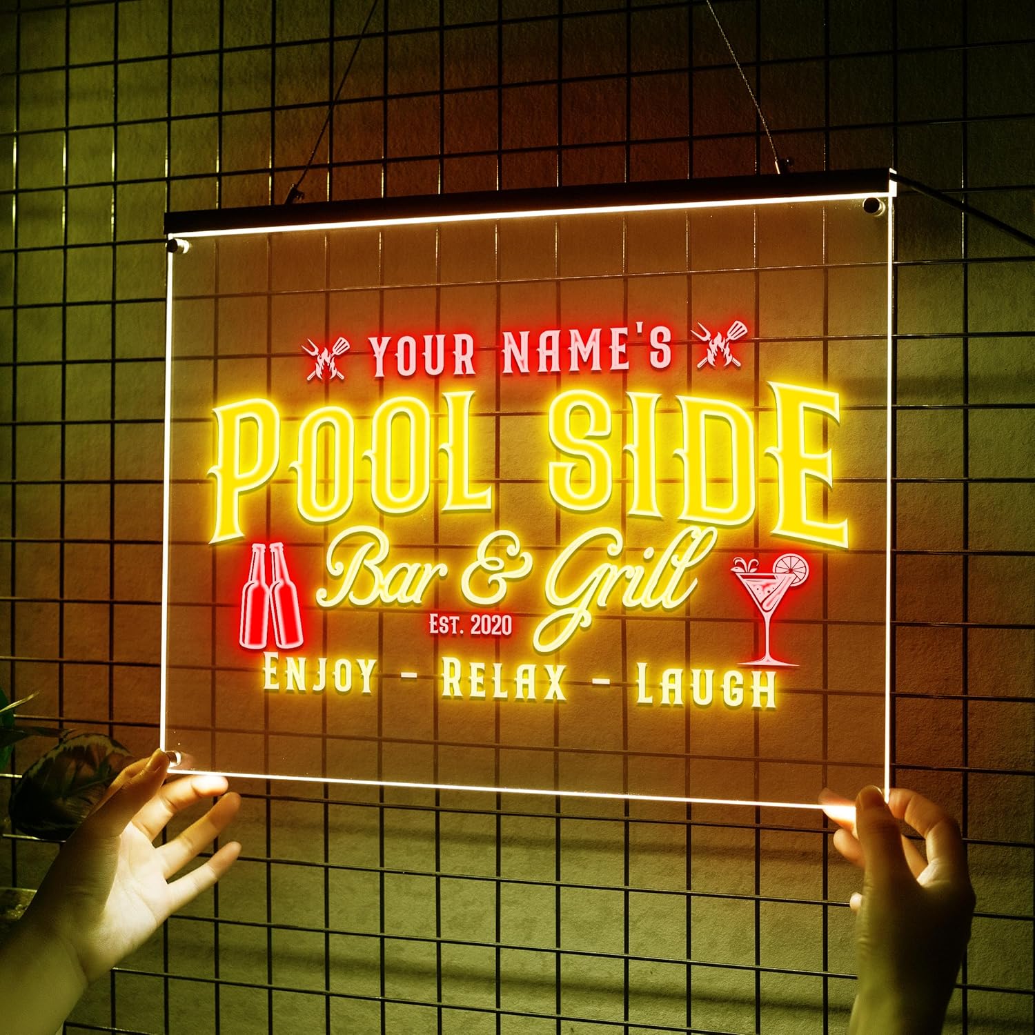 Personalized Pool Side Bar & Grill Neon Sign, Custom LED Wall Light for Backyard, Patio, Outdoor Bar, BBQ Area, Fun Gift for Grill Lovers
