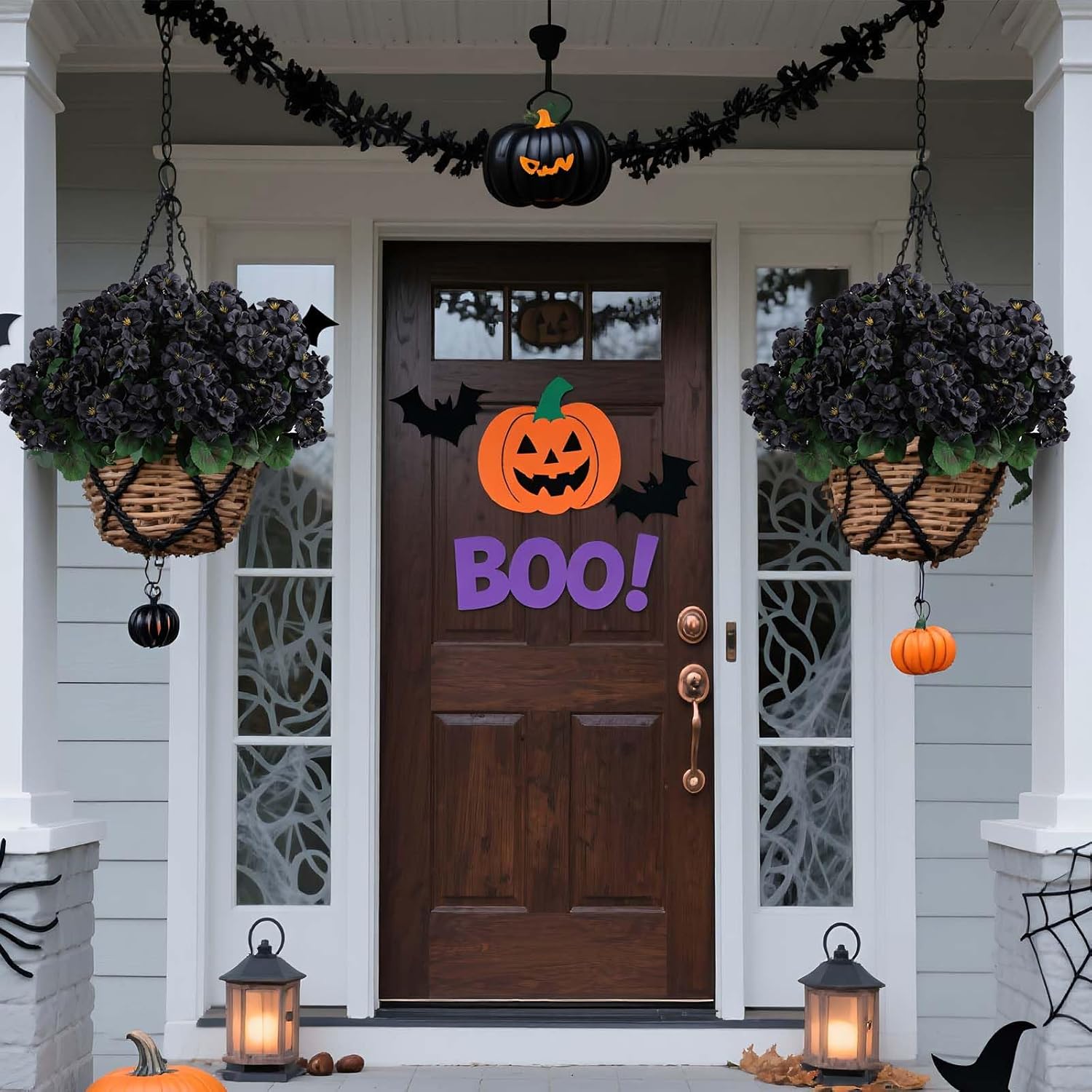 Hananona 6 Bundles Artificial Geranium Flowers for Outdoors Black Silk Geranium Flowers Outdoor UV Resistant Plants Faux Black Flower for Home Kitchen Halloween Table Centerpieces Decor (6, Black)