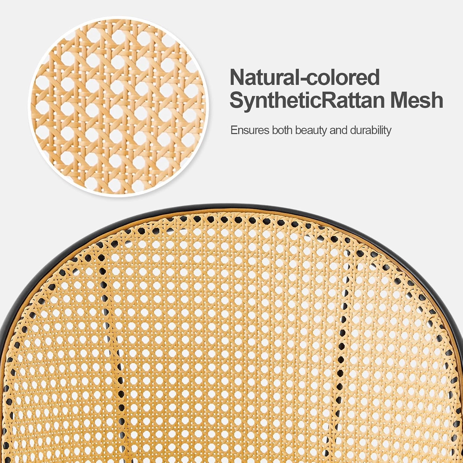 - 【Ergonomic Curved Backrest and Sturdy Frame】: The handcrafted hexagonal mesh fabric adds an elegant touch and showcases fine workmanship, while the woven rattan backrest provides comfort and breathability. With a full backrest design, the rattan chair provides ergonomic body support. A reinforced iron frame ensures strong load-bearing capacity and structural stability. It can support 300 pounds of weight. Each chair also has 4 adjustable feet, which make leveling uneven surfaces easy.