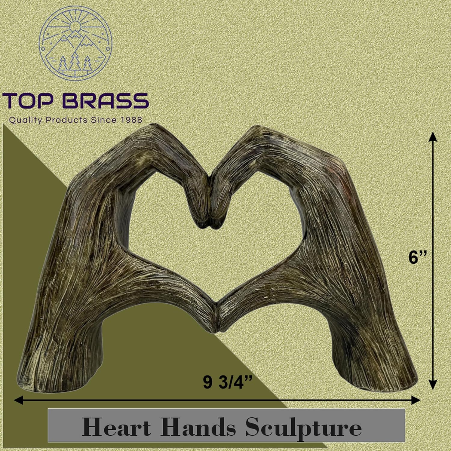 Top Brass Large Rustic Heart Hands Sculpture, 9 3/4” Resin Love Statue – Romantic Decor Accent for Shelf or Mantel – Perfect for Wedding, Valentine's Day or Anniversary (Rustic Wood Grain)