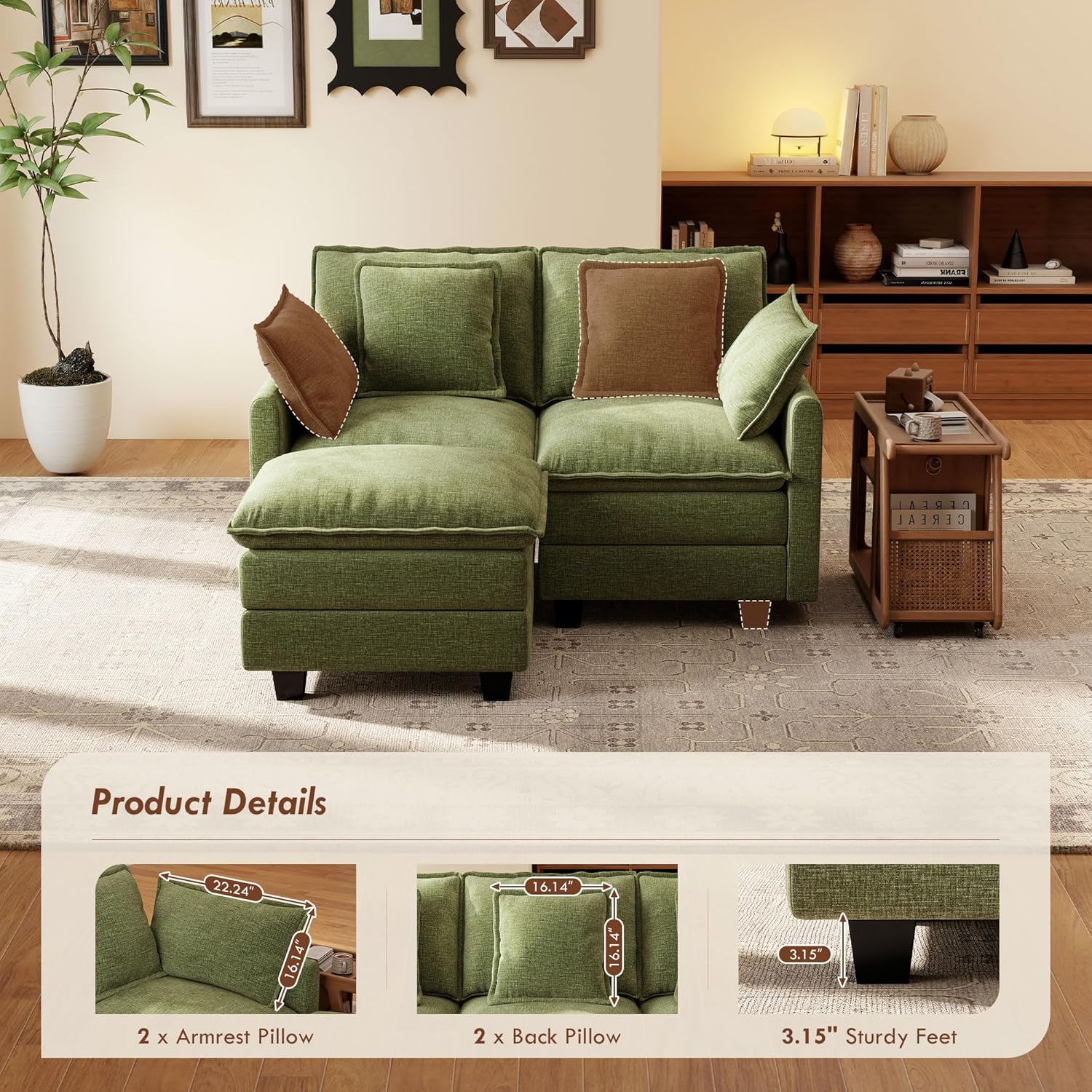- Sturdy Frame & Easy Assembly: This sofa features a high-quality solid wood frame, ensuring exceptional sturdiness and durability, with a maximum weight capacity of 440 lbs per sofa. Additionally, its assembly is incredibly simple—just follow the instructions included in the package, and you can complete it in less than 30 minutes.
