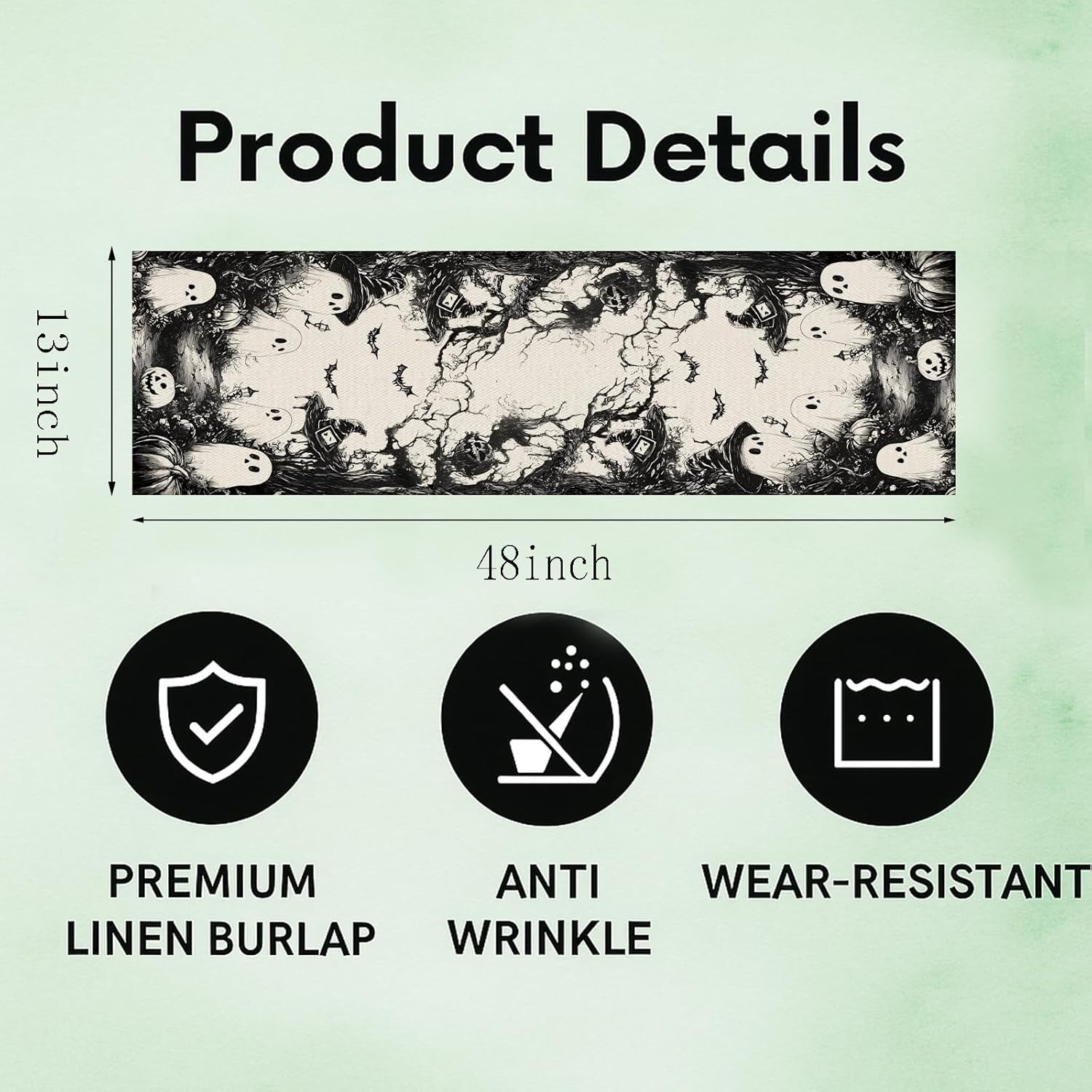 GPGHE Halloween Table Runner Black Ghost Holiday Burlap Table Decoration Indoor Outdoor Home Decor Party Supply 13 x 48 Inch