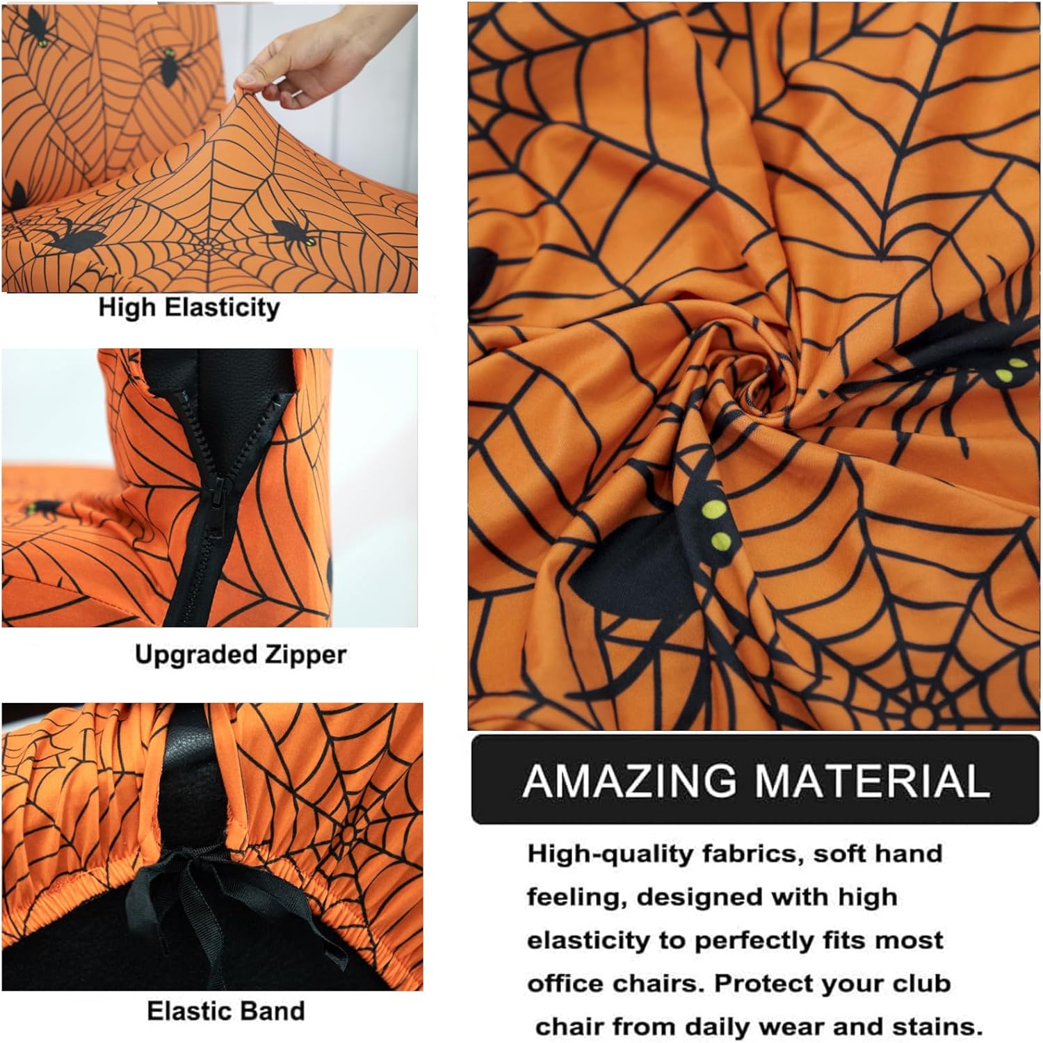 - Halloween HOLIDAY DECORTAION DESIGN. Multiple Halloween patterns for choices such as spider, spider web, pumpkin, ghost, terror Bloody Handprint and so on. It refurbish old office chair and durability to add new life to your computer chairs. It's easy to create a Halloween atmosphere.