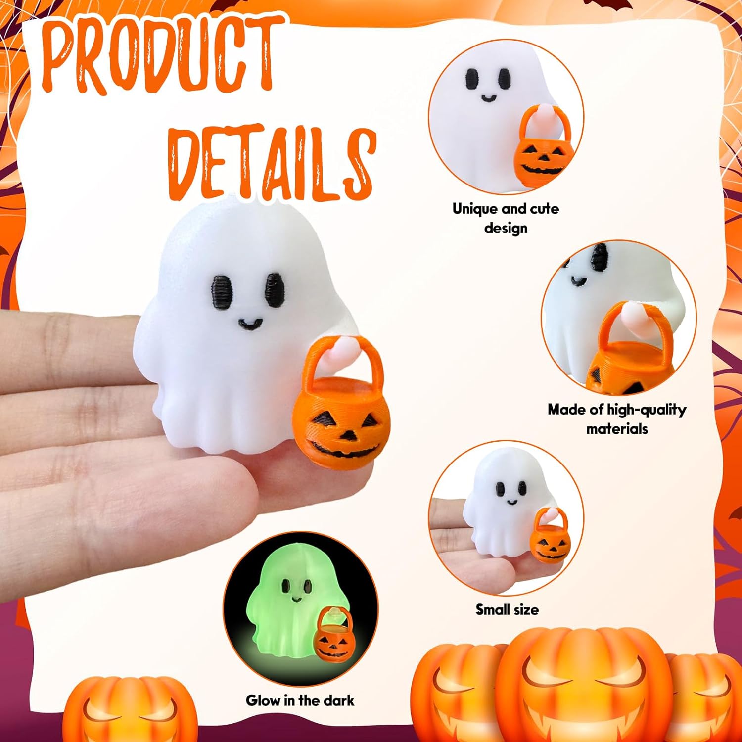 - Charming Minimalist Design: The centerpiece is an adorable white ghost with a rounded shape, big expressive eyes, and a cheerful smile—its soft, matte finish exudes warmth while perfectly capturing Halloween’s playful spirit.