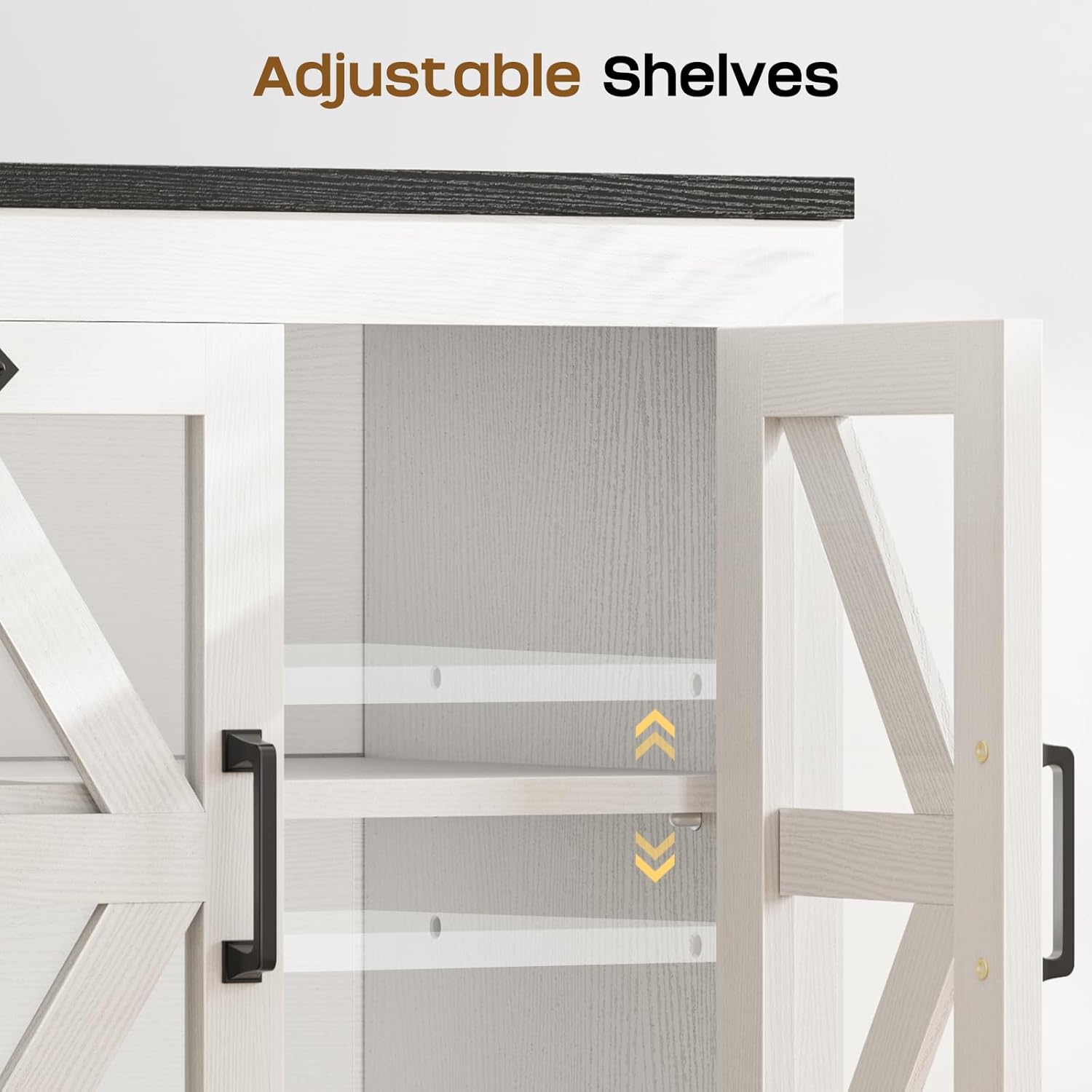 Farmhouse Side Table - 24" Large Night Stand Set 2, Wood Nightstand with Charging Station, Bedside Table with Adjustable Shelf, End Tables Living Room, Rustic Bed Side Tables Bedroom, White